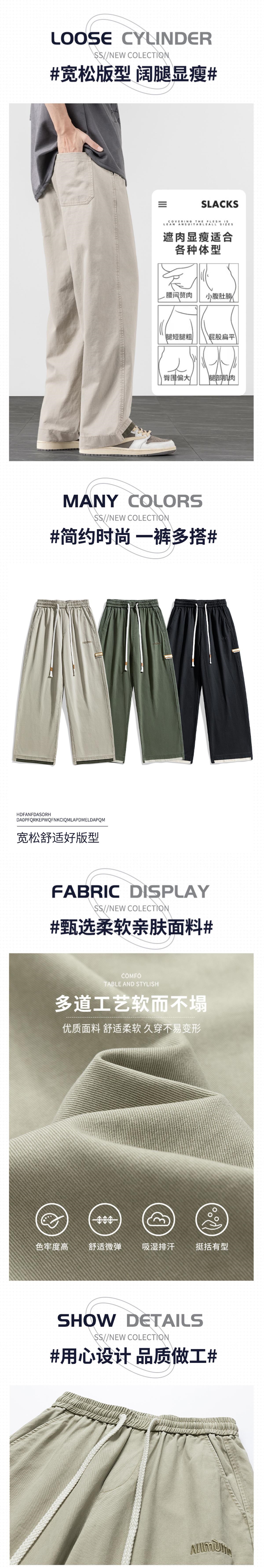 미국산 순면 캐주얼 바지 남성용 트렌디 신상 루즈핏 드레이프 와이드 레그 멋진 스트레이트 스포츠 롱 팬츠