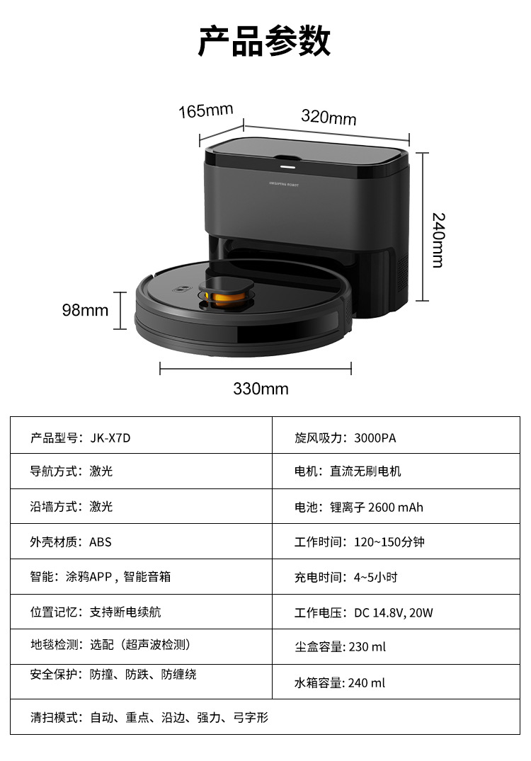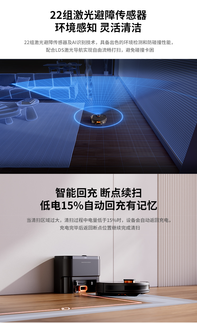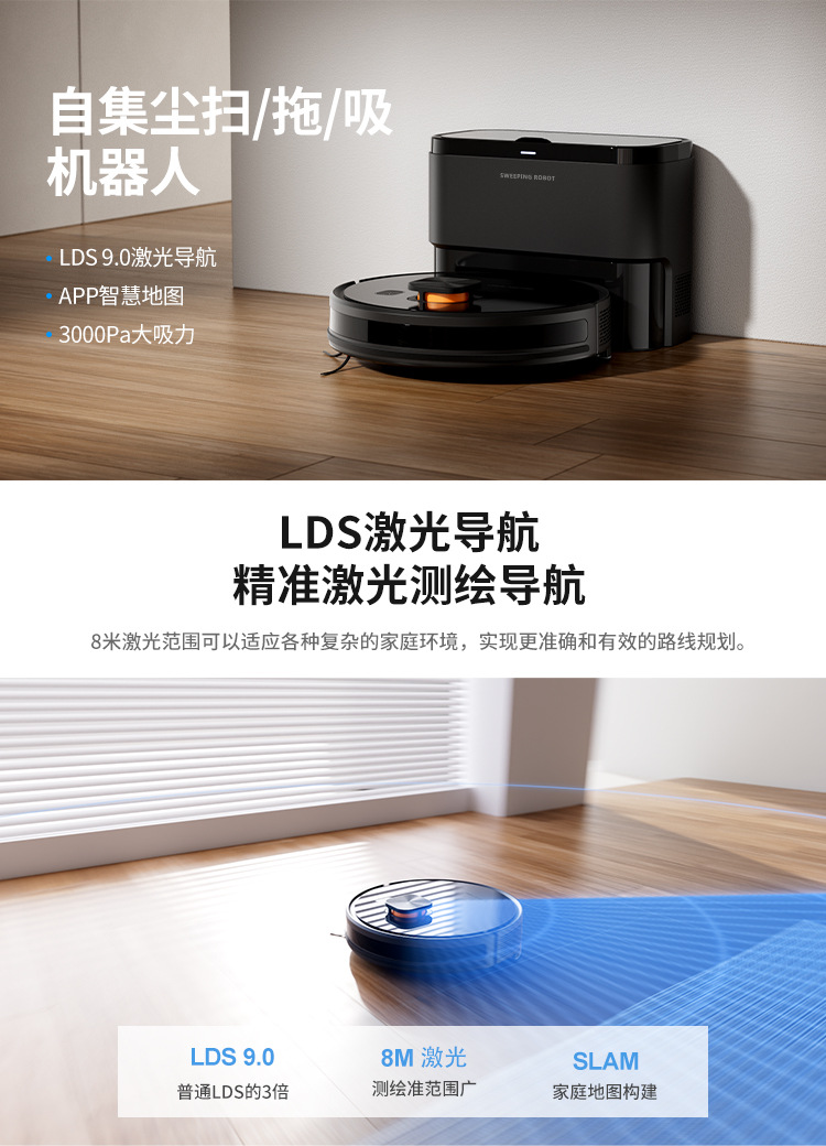지능형 스위퍼 레이저 내비게이션 레이더 지도 계획 자동 먼지 수집 다목적 진공 청소기