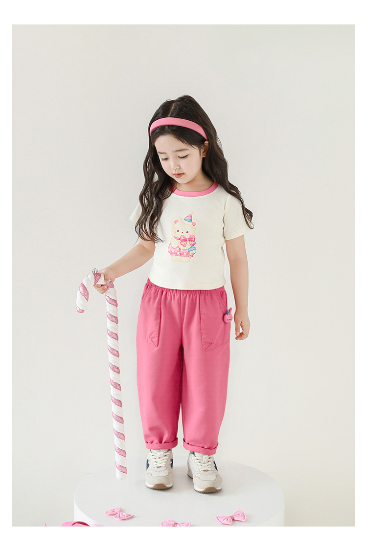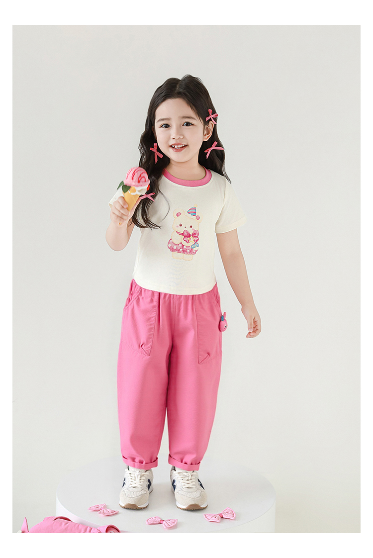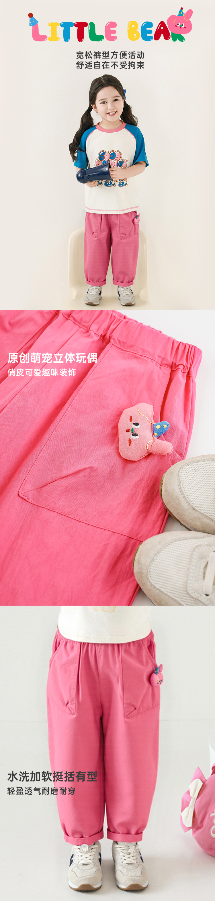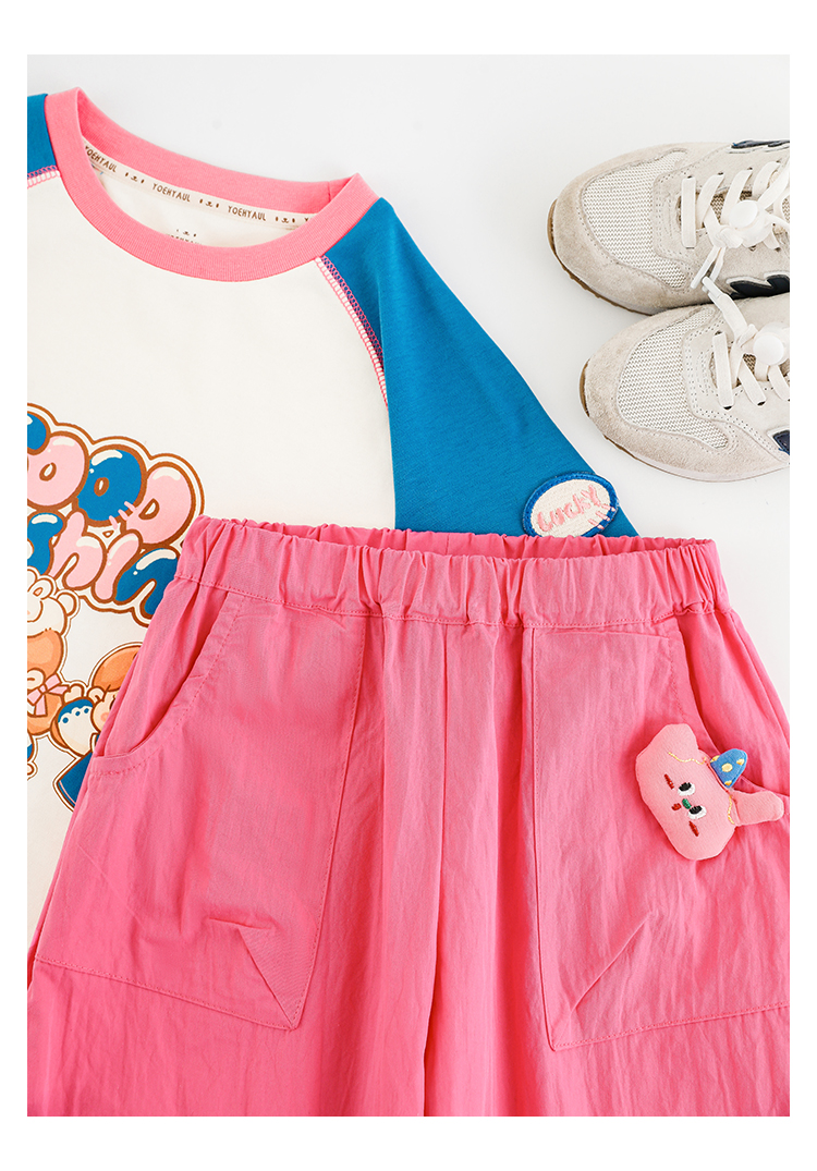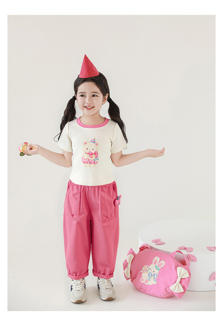 Wulibuyi 소녀의 귀여운 애완 동물 입체 인형 바지 2025 여름 귀여운 가볍고 통기성이 뛰어난 루즈 캐주얼 바지