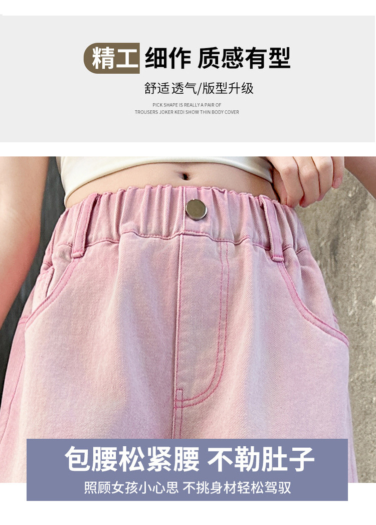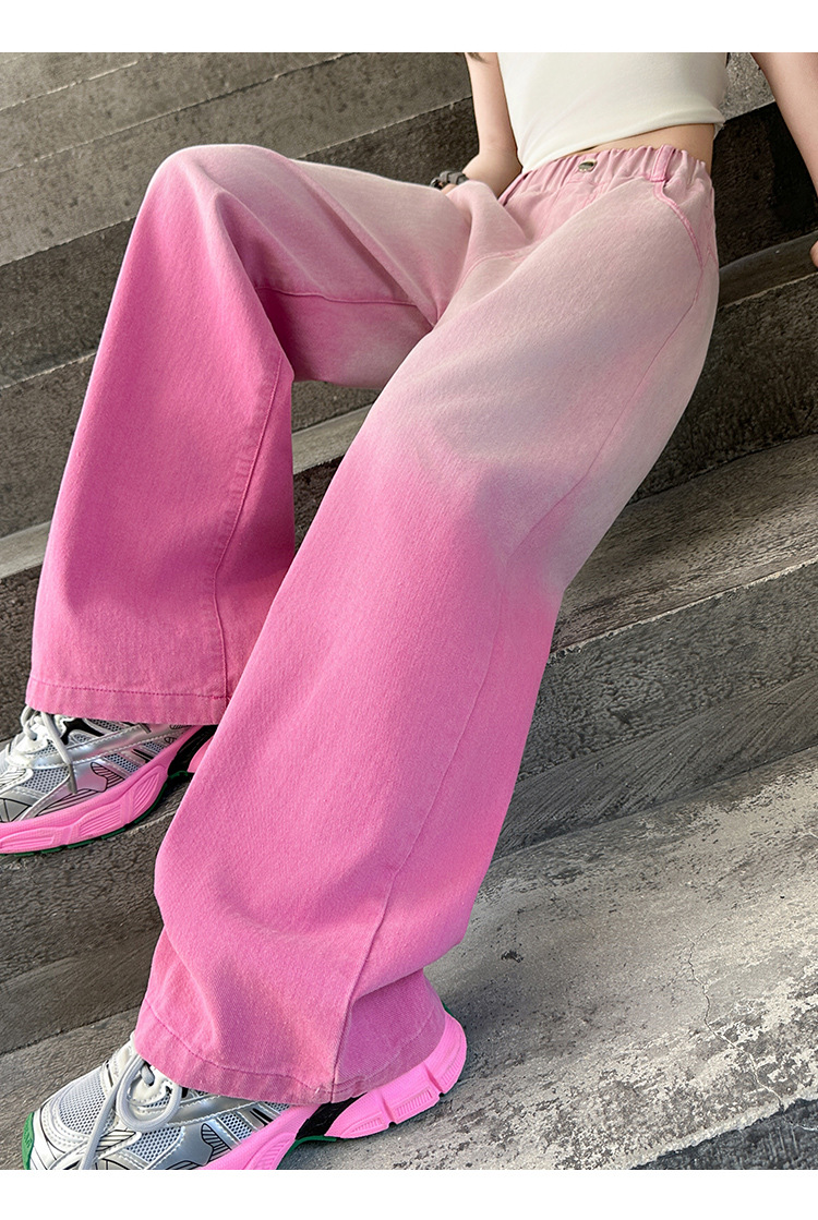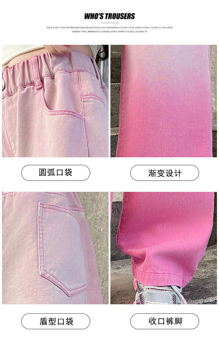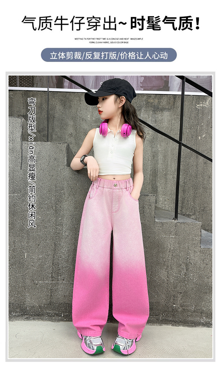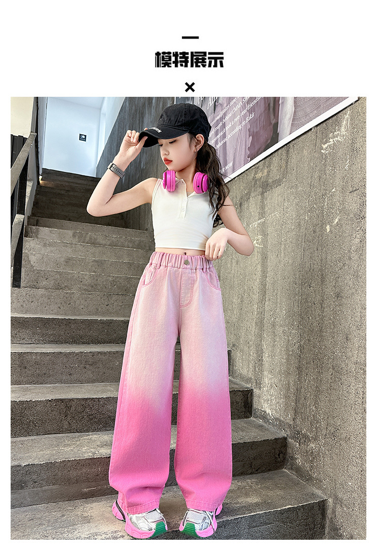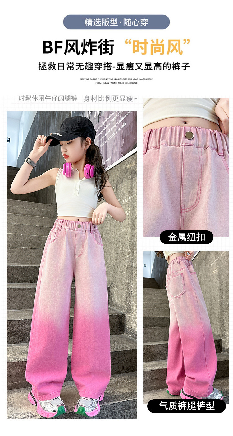 여자 봄 핑크 그라데이션 청바지 2025 새로운 어린이 와이드 레그 팬츠 여자 중학생 스트레이트 팬츠스토어 가기