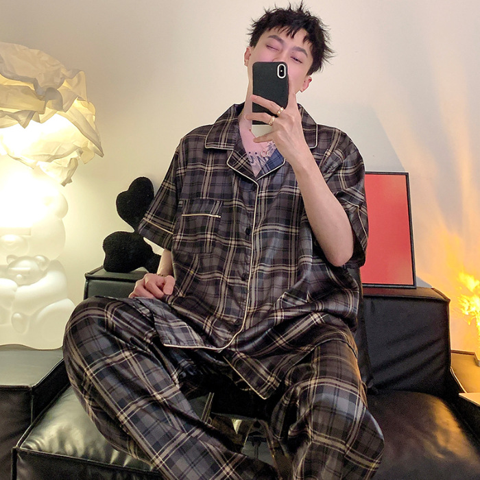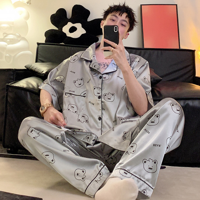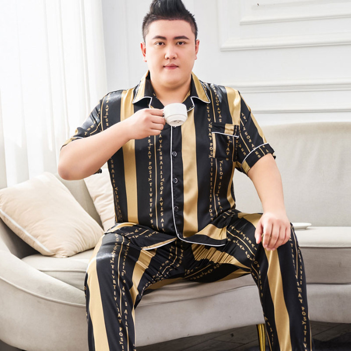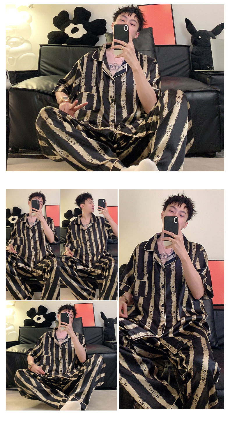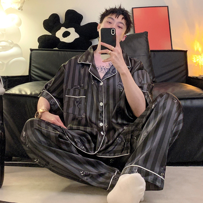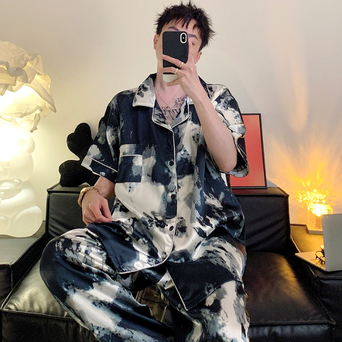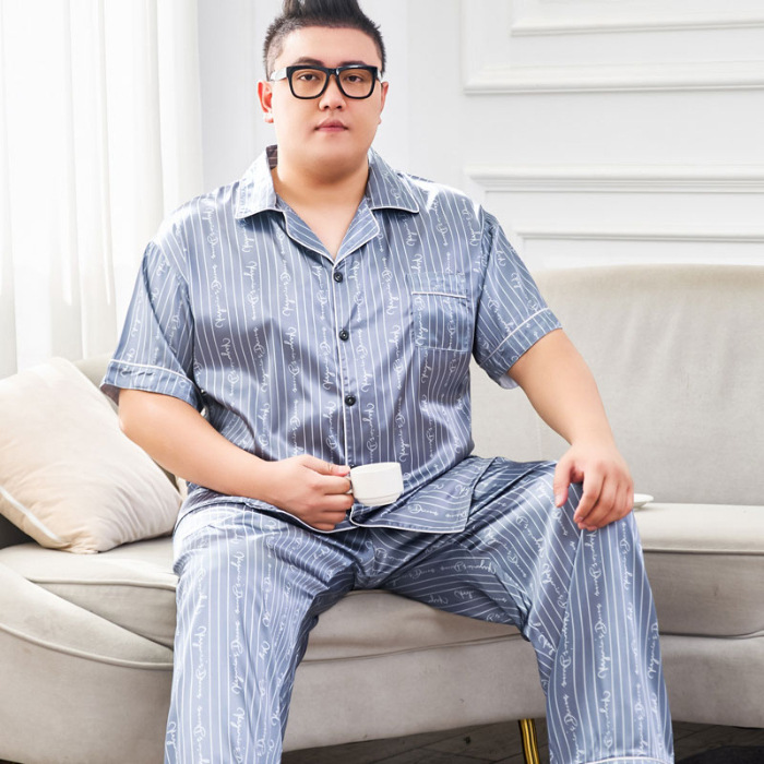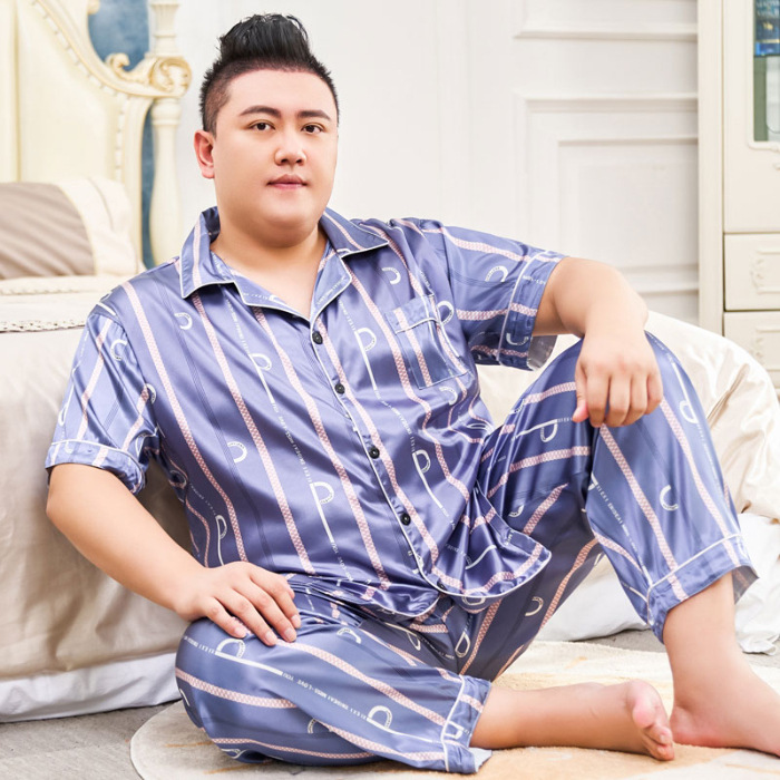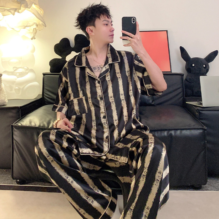 남성용 잠옷 여름 얼음 실크 2025 새로운 반팔 바지 여름 모조 실크 남성용 대형 홈웨어 세트