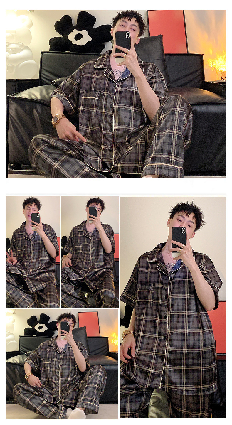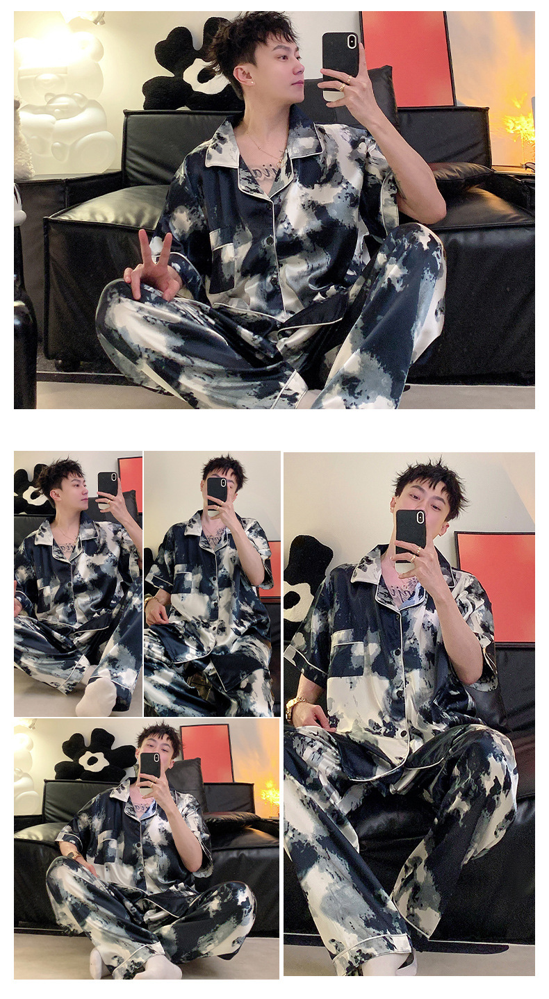 남성용 잠옷 여름 얼음 실크 2025 새로운 반팔 바지 여름 모조 실크 남성용 대형 홈웨어 세트스토어 가기