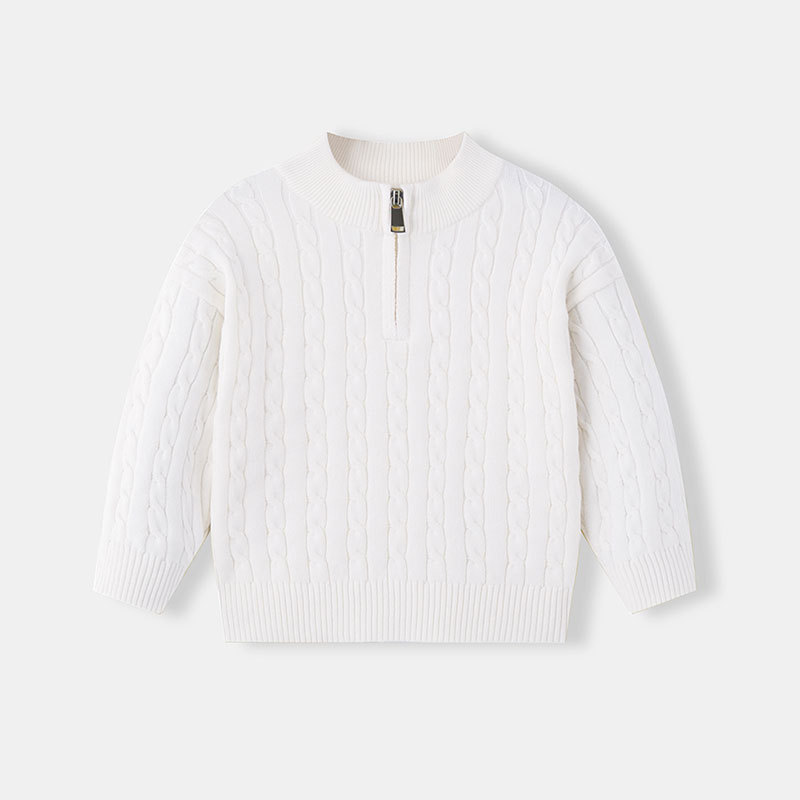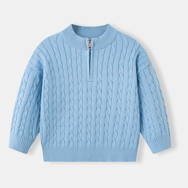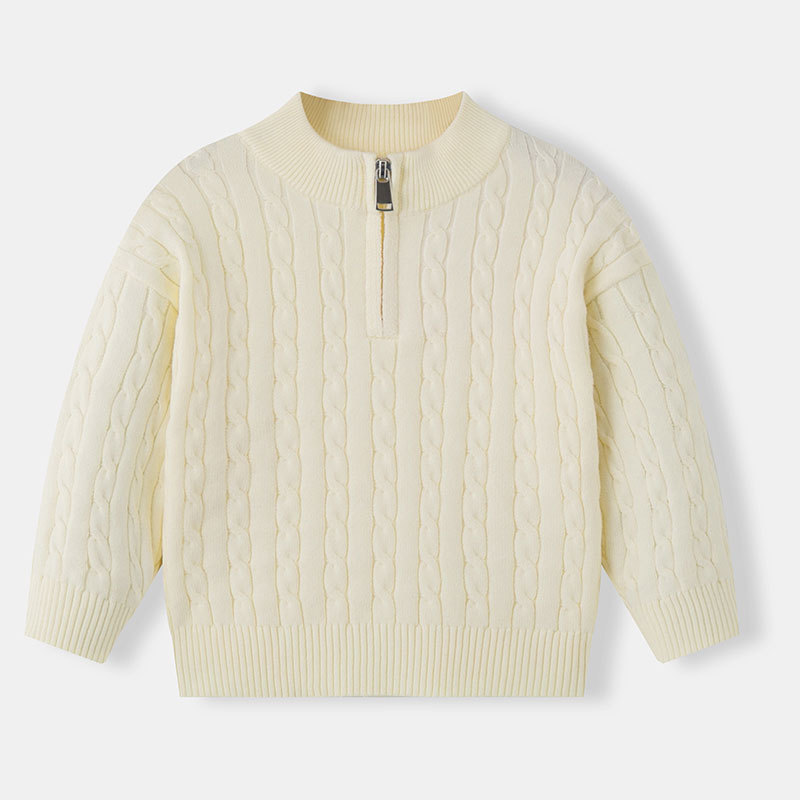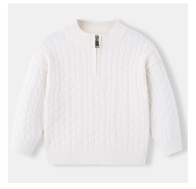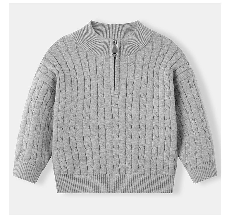 2025 새로운 가을 및 겨울 어린이 반 터틀넥 지퍼 트위스트 스웨터 소년 소녀 베이비 내베이스 스웨터