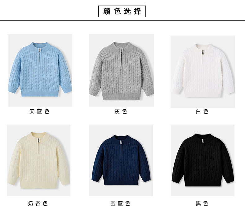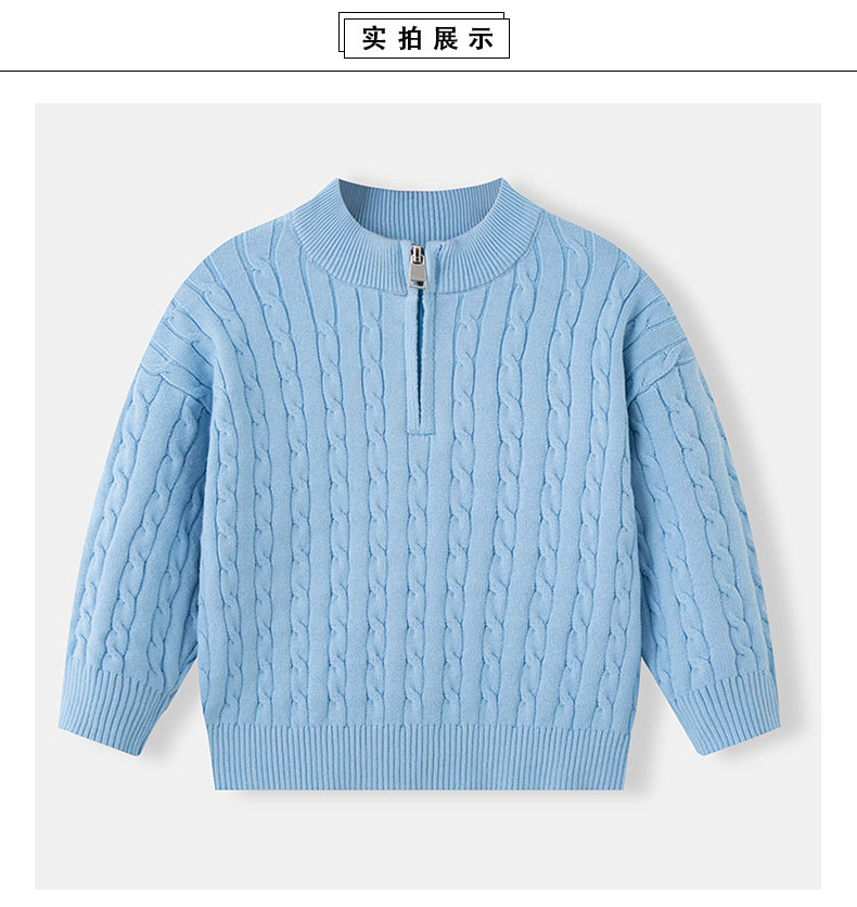 2025 새로운 가을 및 겨울 어린이 반 터틀넥 지퍼 트위스트 스웨터 소년 소녀 베이비 내베이스 스웨터스토어 가기