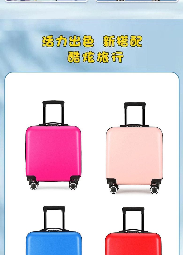 20 인치 새로운 어린이 수하물 단색 프로스트 조합 잠금 탑승 케이스는 로고 패턴 어린이 트롤리 케이스를 인쇄 할 수 있습니다.스토어 가기