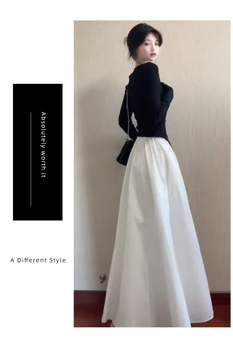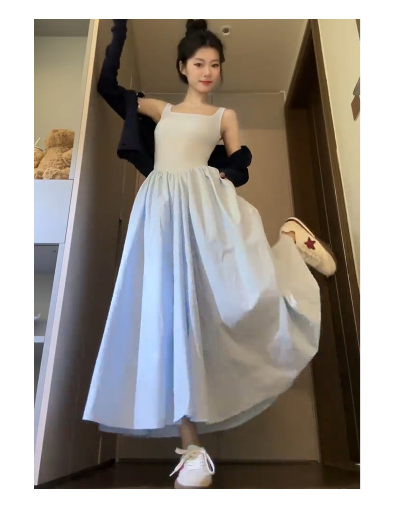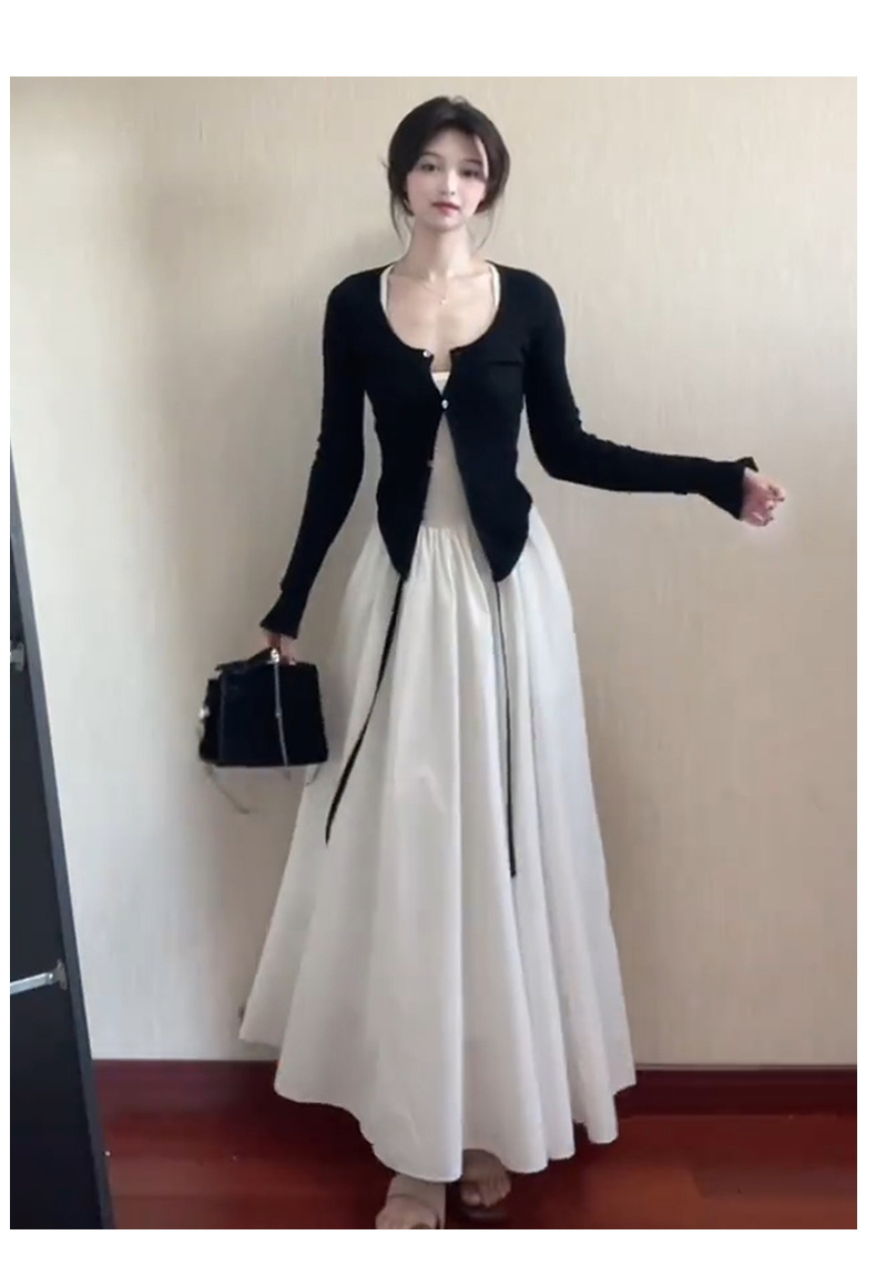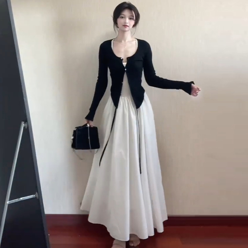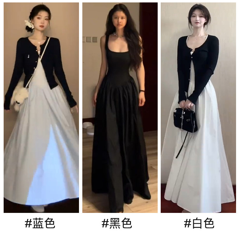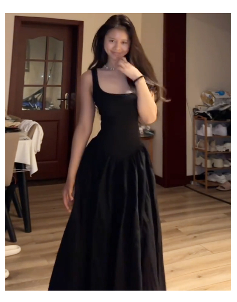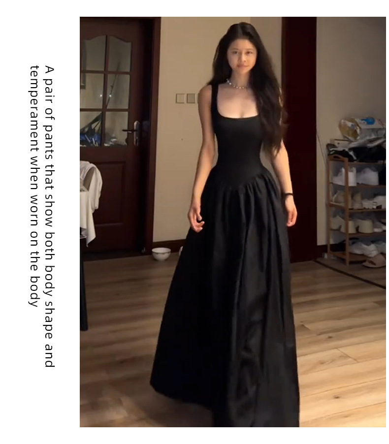 블랙 슬링 원피스 여자 2025 년 여름 새로운 타이트 허리 슬리밍 폰툰 원피스 헵번 스타일 프렌치 A-라인 롱 원피스스토어 가기