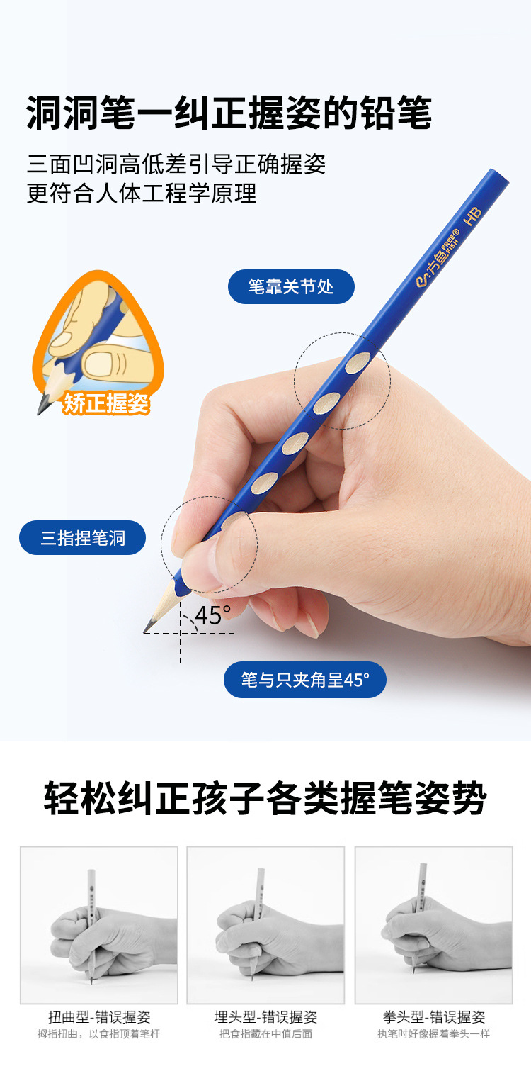 홀이 있는 삼각형 HB 연필, 초등학생 필기 연습 및 그립 자세 교정용, 제조업체 도매 교정 연필스토어 가기