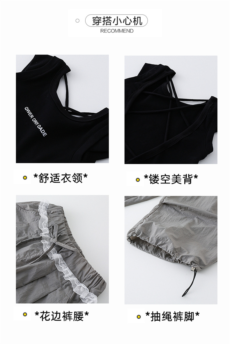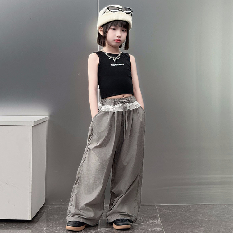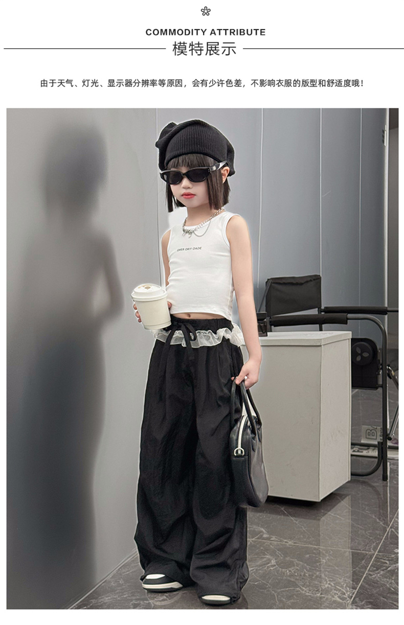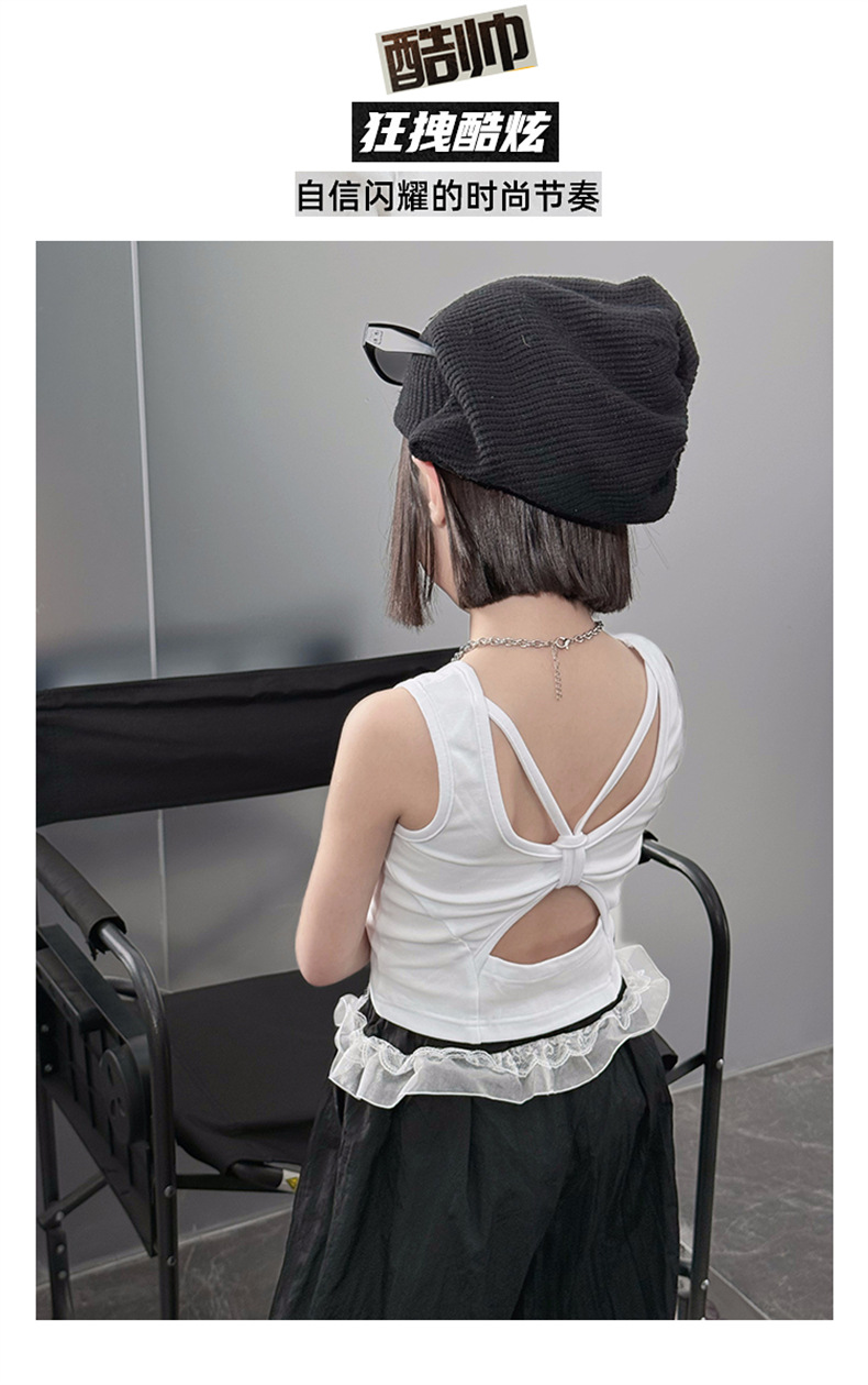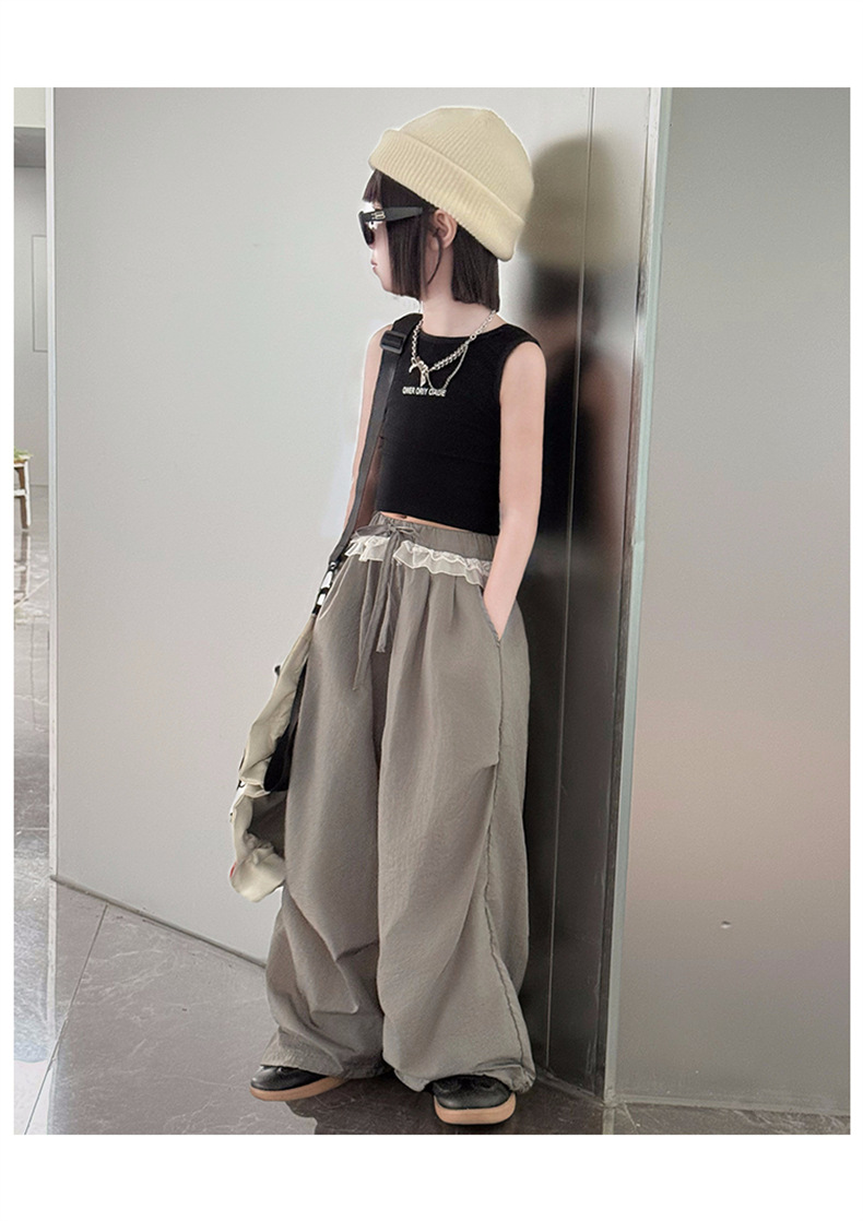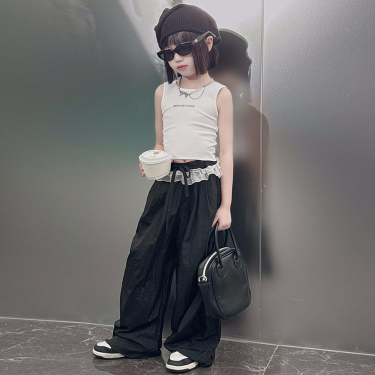 걸스 한국식 트렌디 백리스 조끼 세트 중 · 빅 키즈 2025 여름 새 민소매 티셔츠 레이스 와이드 레그 팬츠 씬