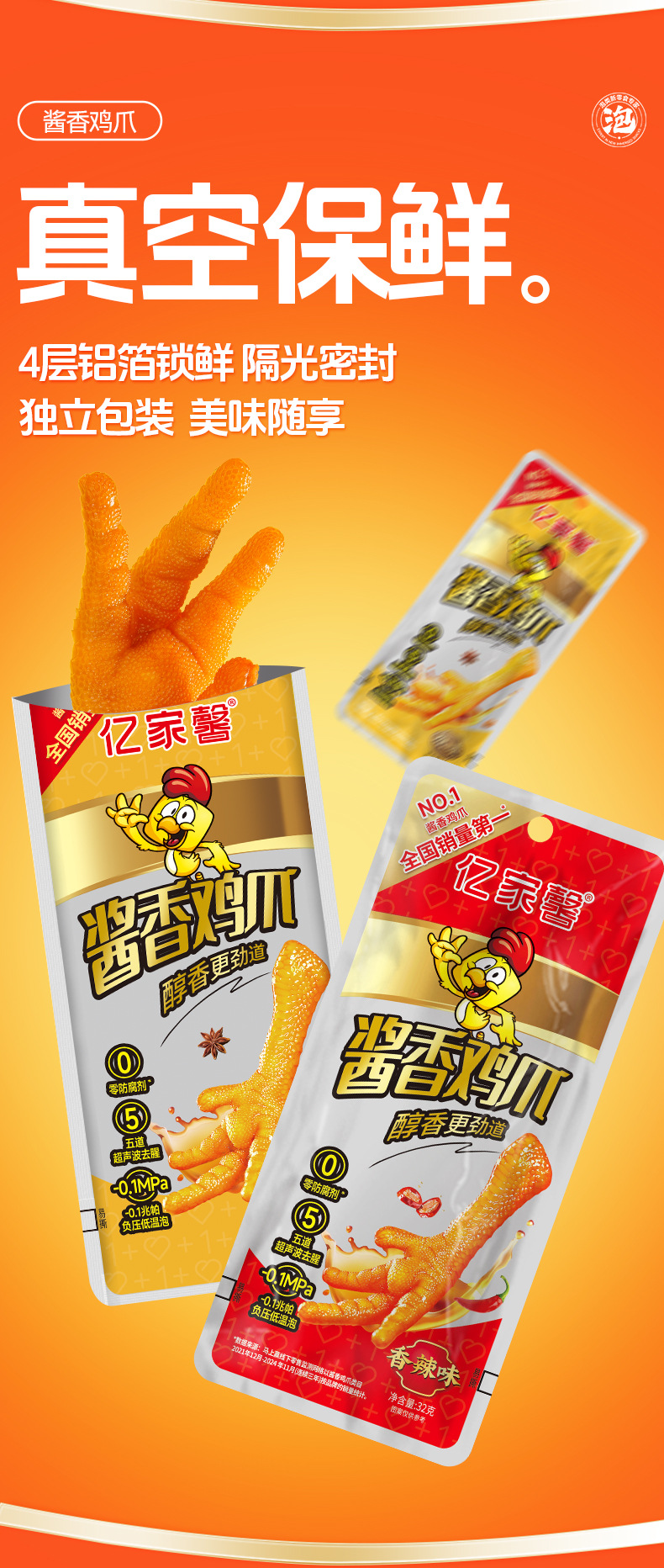 Yijiexin 매콤한 고추장아찌 닭발, 매콤한 닭발, 바로 먹을 수 있는 닭고기 조리 식품, 매콤한 닭발, 간식, 캐주얼 스낵