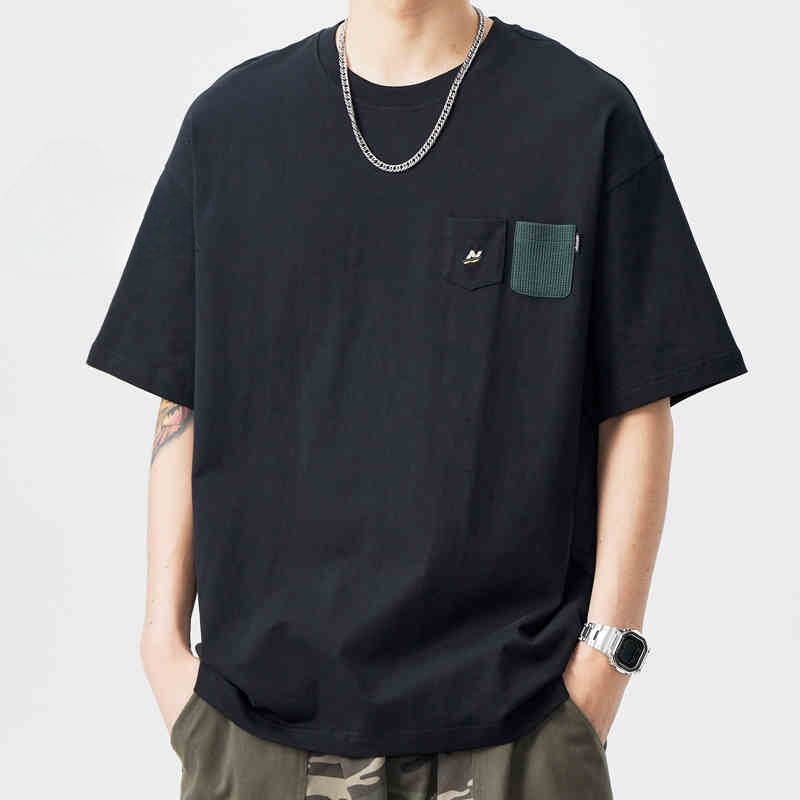 여름 아메리칸 스타일 뉴 코튼 플러스 사이즈 탑 티셔츠 남성용 뚱뚱한 느슨한 캐주얼 간단한 라운드 넥 탑 짧은 소매스토어 가기