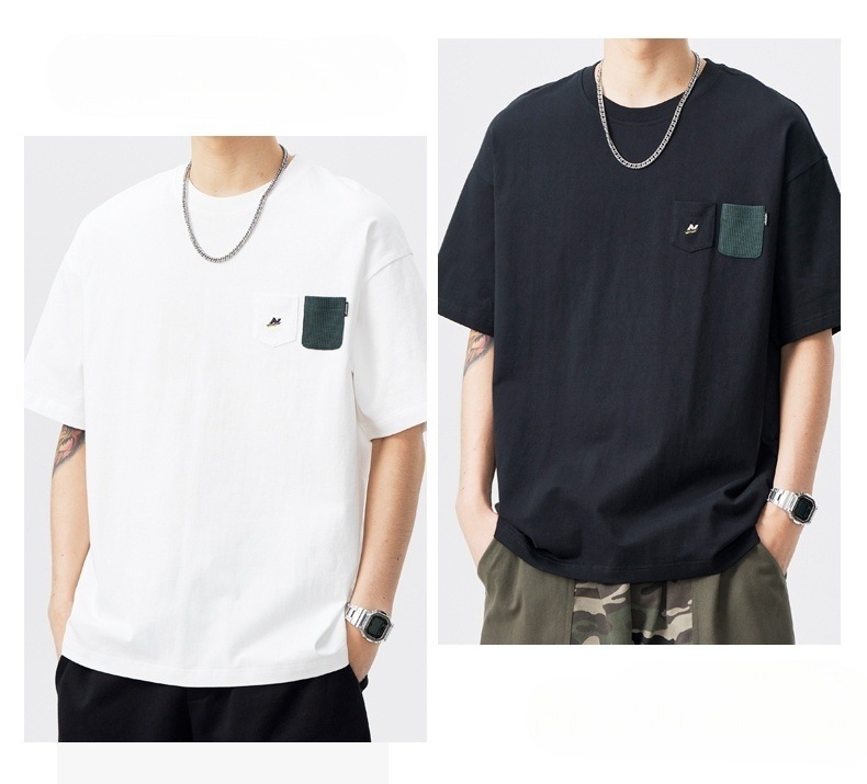 여름 아메리칸 스타일 뉴 코튼 플러스 사이즈 탑 티셔츠 남성용 뚱뚱한 느슨한 캐주얼 간단한 라운드 넥 탑 짧은 소매