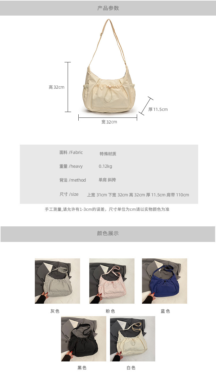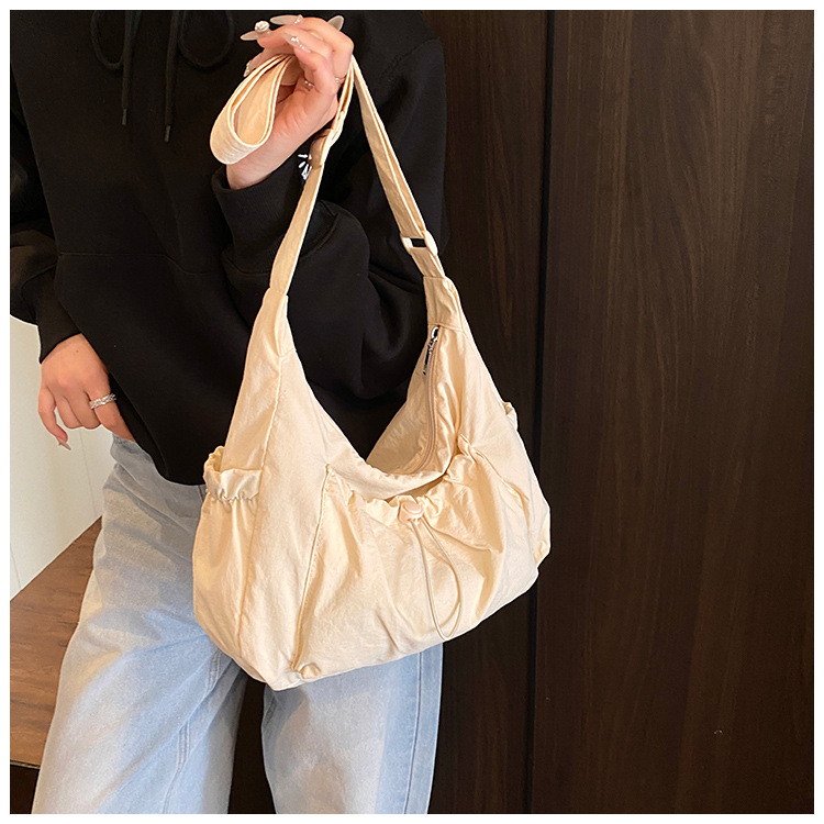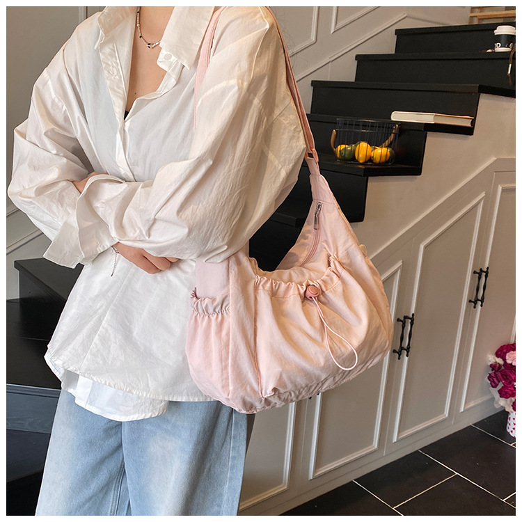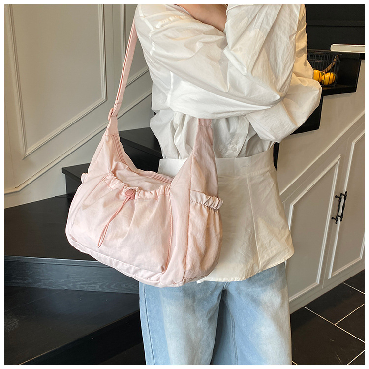 한국 스타일 유행 나일론 끈 어깨 가방 2025 새로운 도착 대용량 학생 크로스 바디 가방 여성을위한 경량 통근 배낭