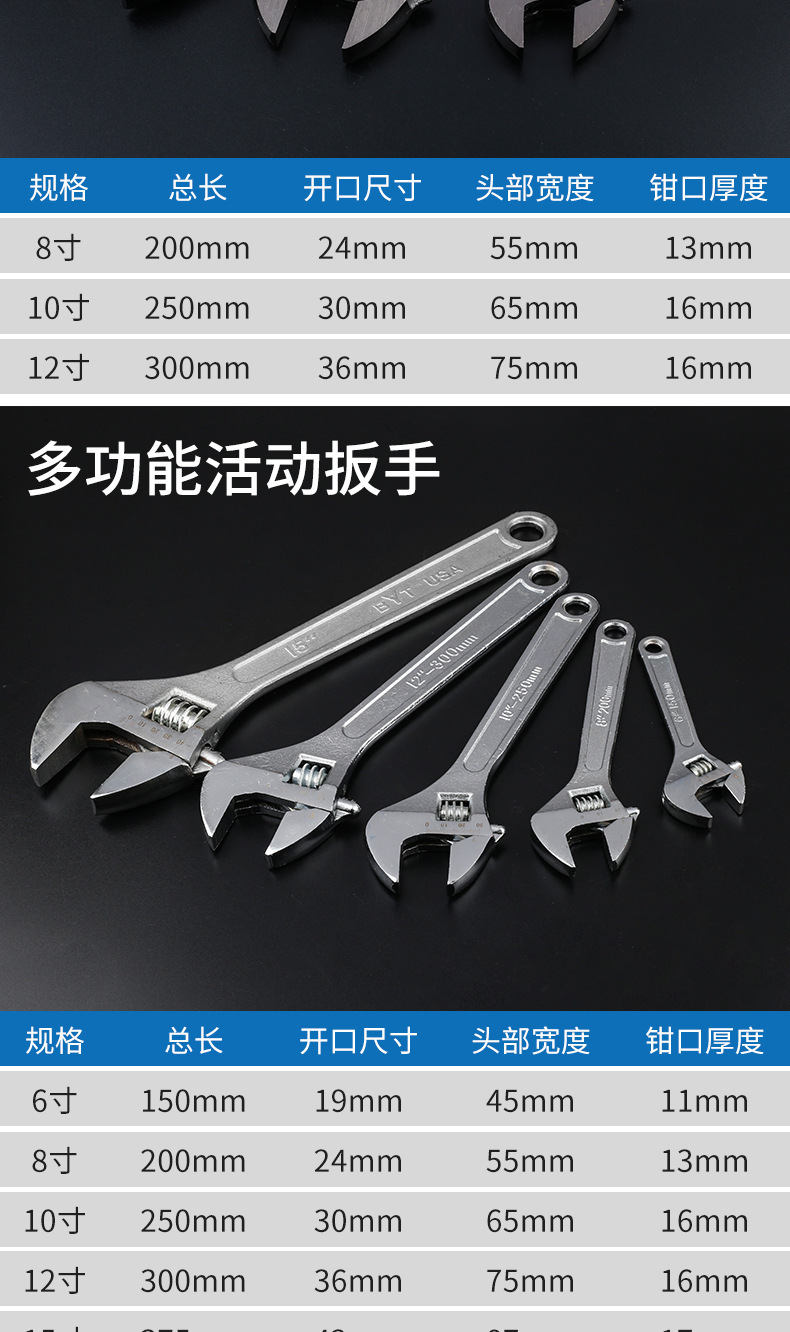 • 【 8inch 】 조정 가능한 스패너(클래식 스타일) - 상자당 120개