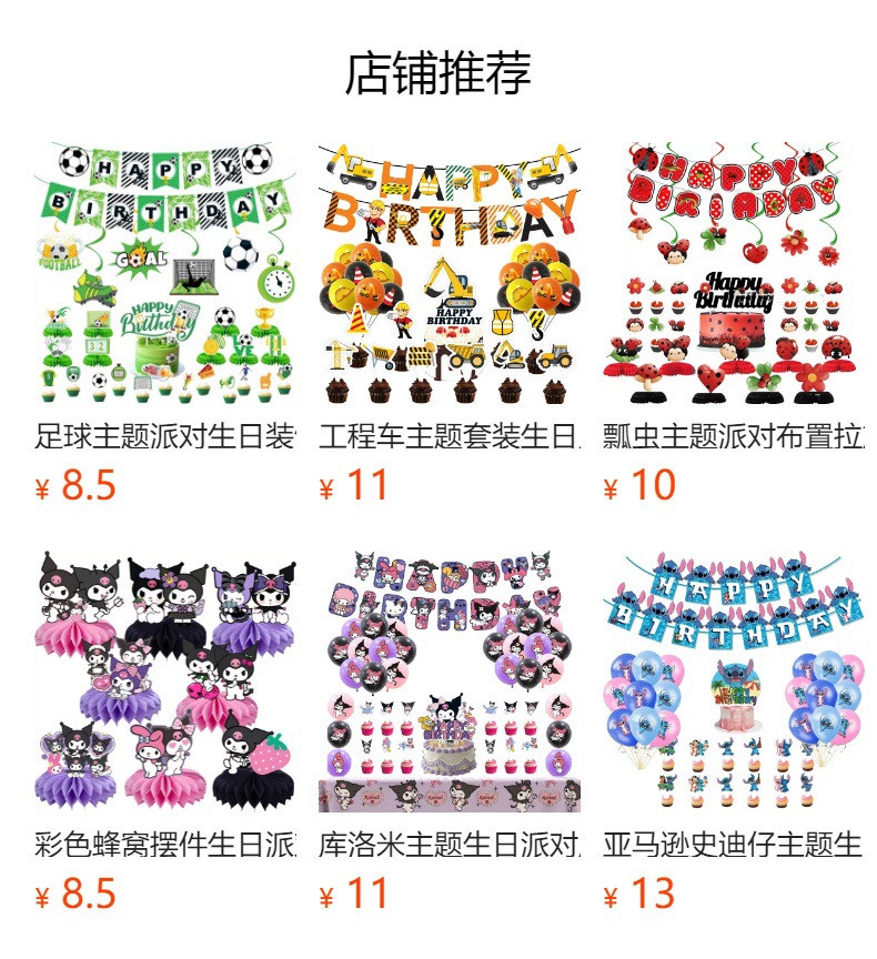 【螺旋6PCS+拉旗1PCS+蛋糕插15小1 大+12寸乳胶气球20PCS