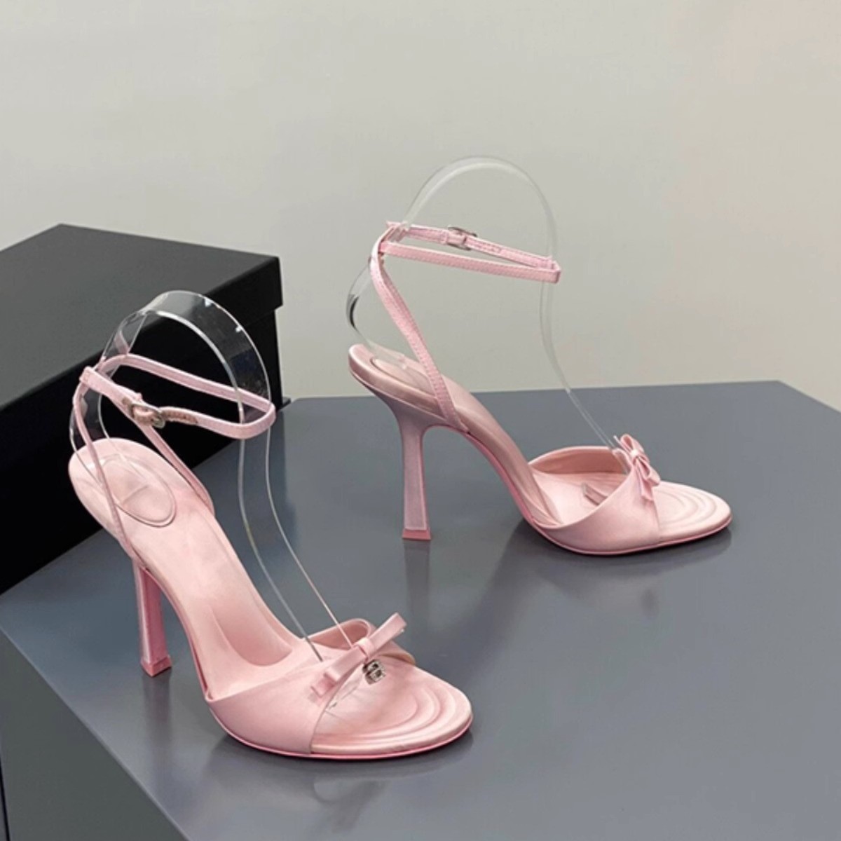 2025 새로운 여름 나비 매듭 새틴 기질 하이힐 여성 섹시한 라인 석 문자 스틸레토 힐 오픈 토 샌들 여성