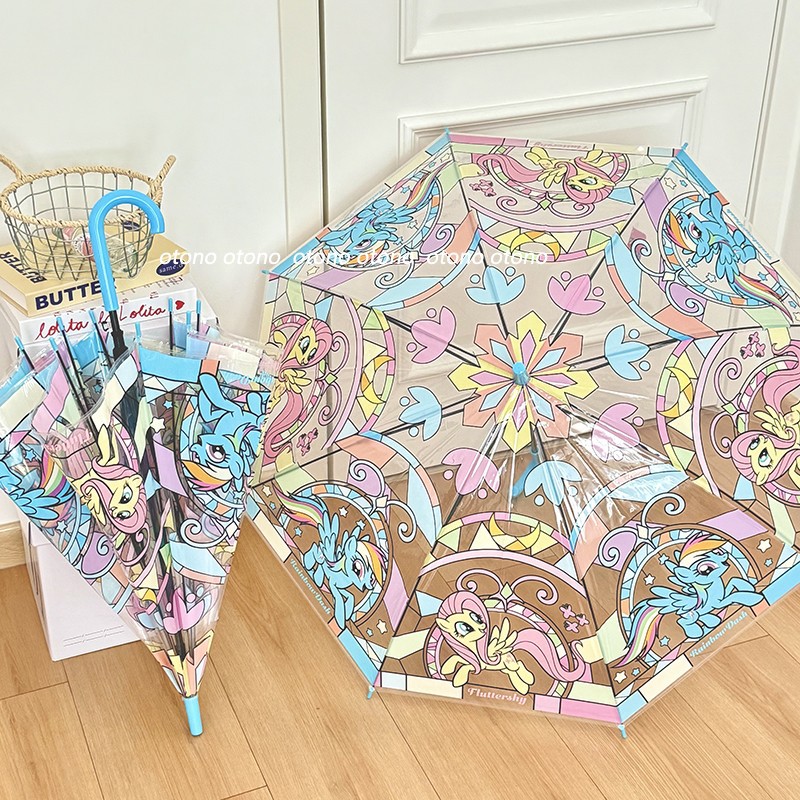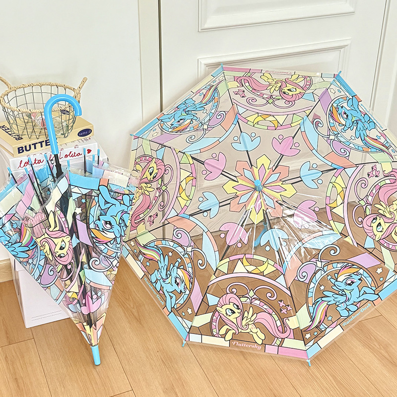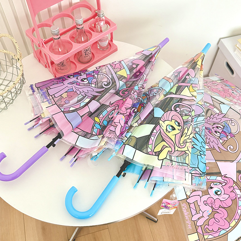 정품 포니 폴리 유리 투명 우산 귀여운 여성 높은 값 긴 손잡이 우산 초등학생스토어 가기