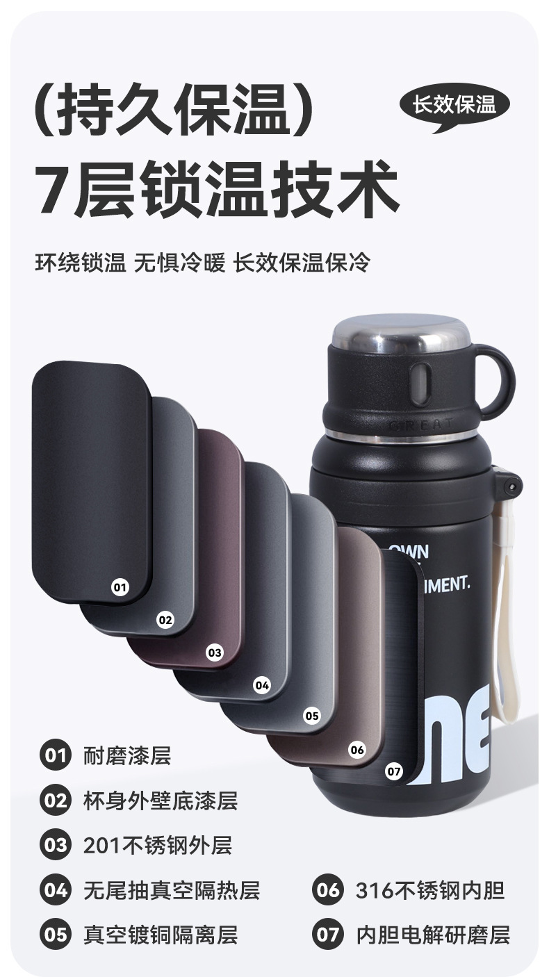 고급스러운 316 스테인리스 진공 단열컵, 야외 휴대용 스포츠 물병, 한 컵에 두 가지 음료를 마실 수 있는 빨대컵