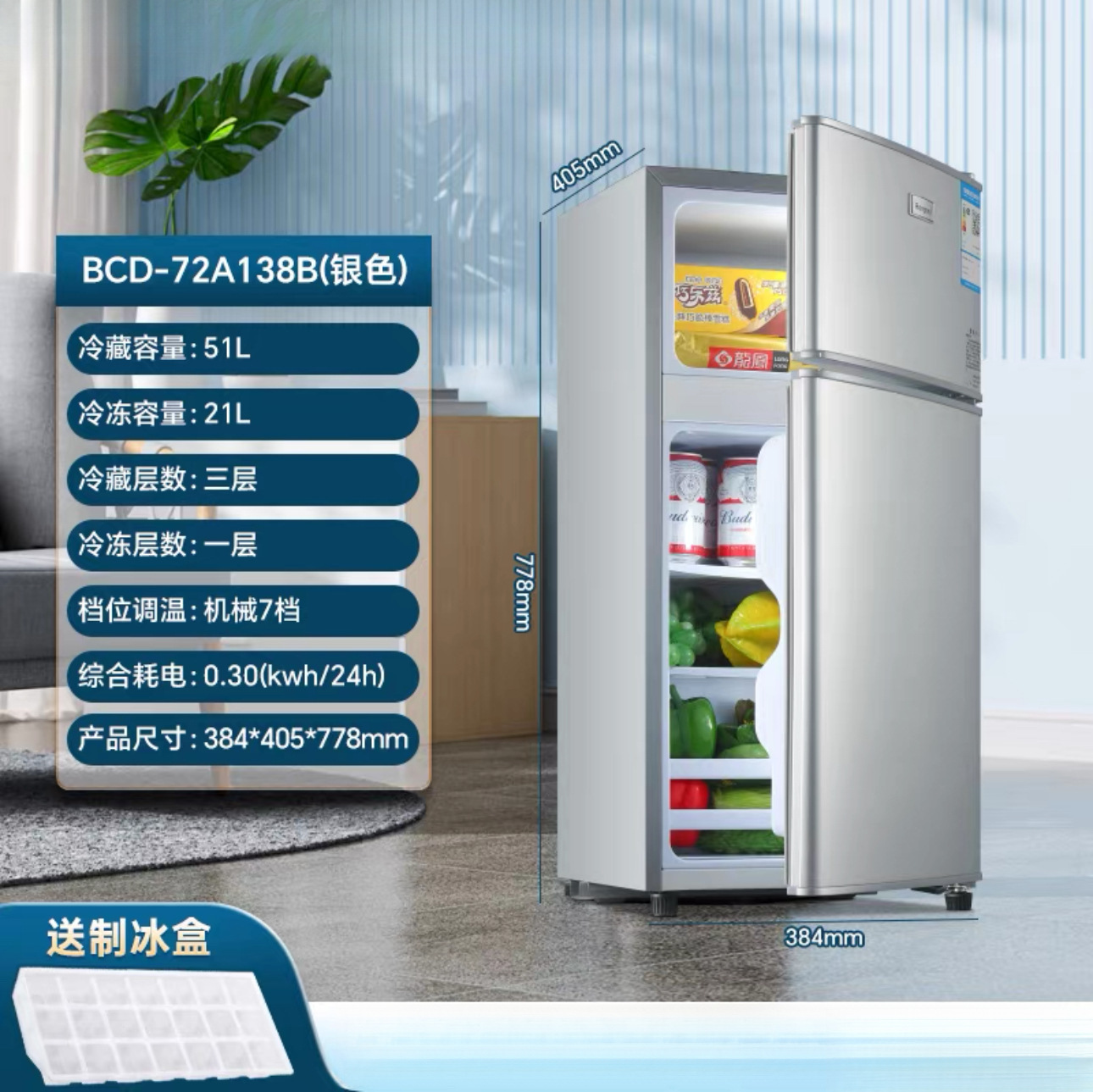 가정용 임대 소형 냉장고, 매우 경제적인 냉동 및 냉장, 새로운 양문형 무소음 일급 에너지 절약형 냉장고, 기숙사 절전