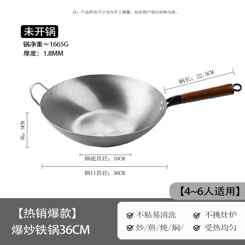 전통적인 구식 철 냄비 가정용 요리 냄비 코팅되지 않은 냄비 붙지 않는 냄비 두꺼운 상업용 레스토랑 요리사 냄비 제조 업체스토어 가기
