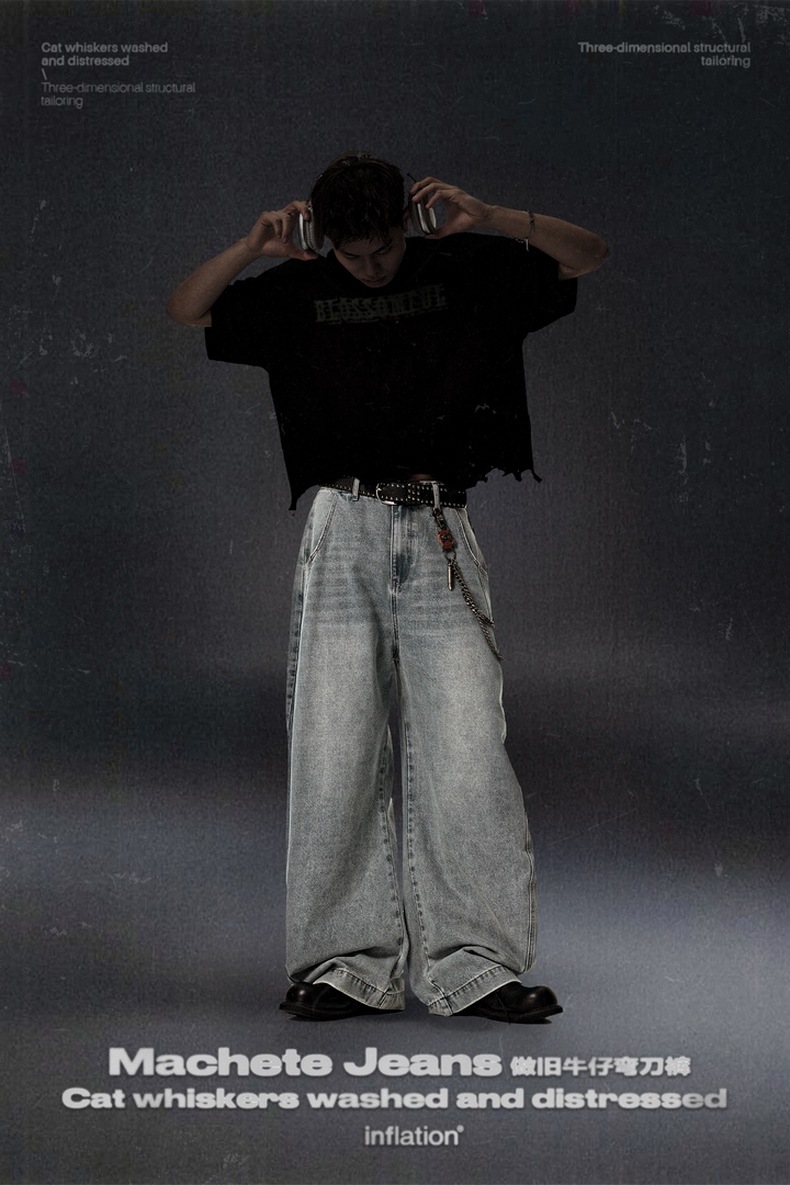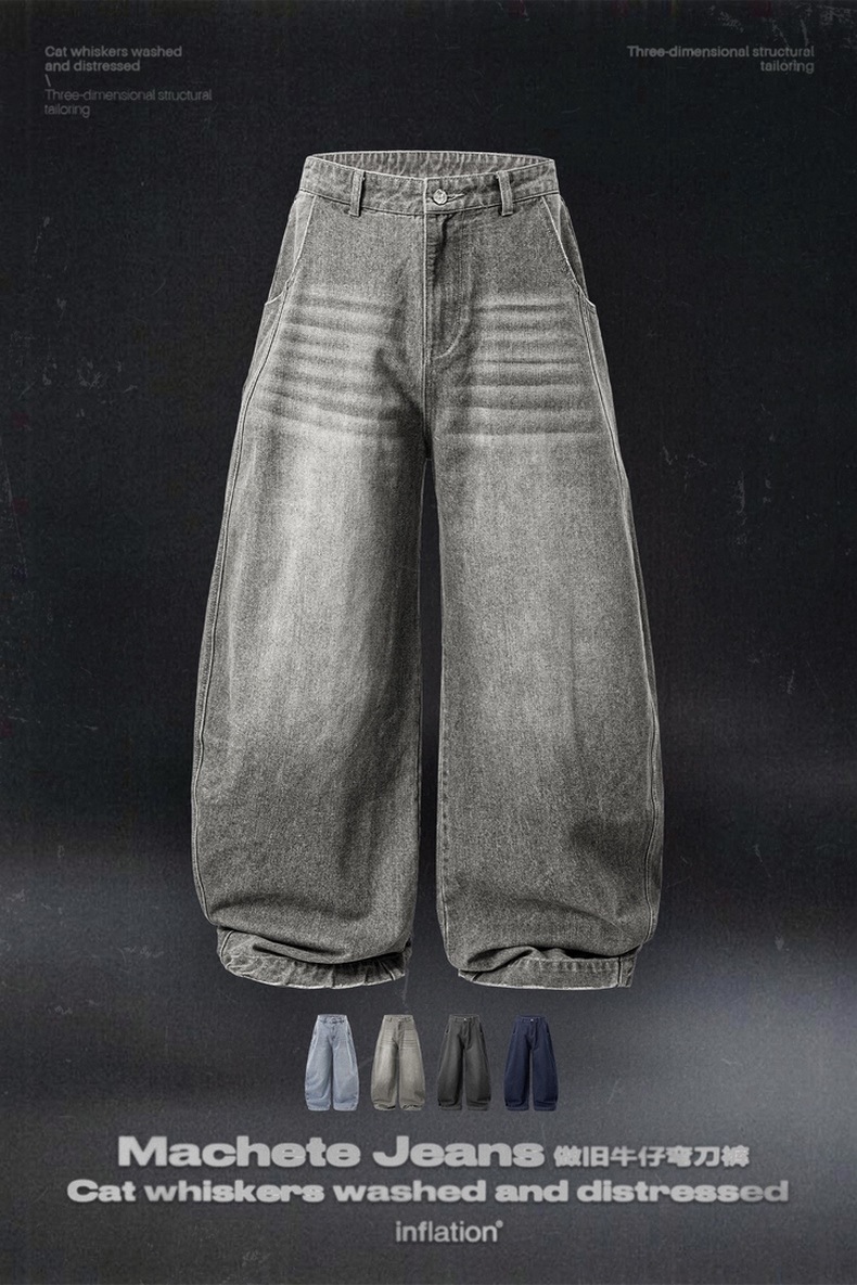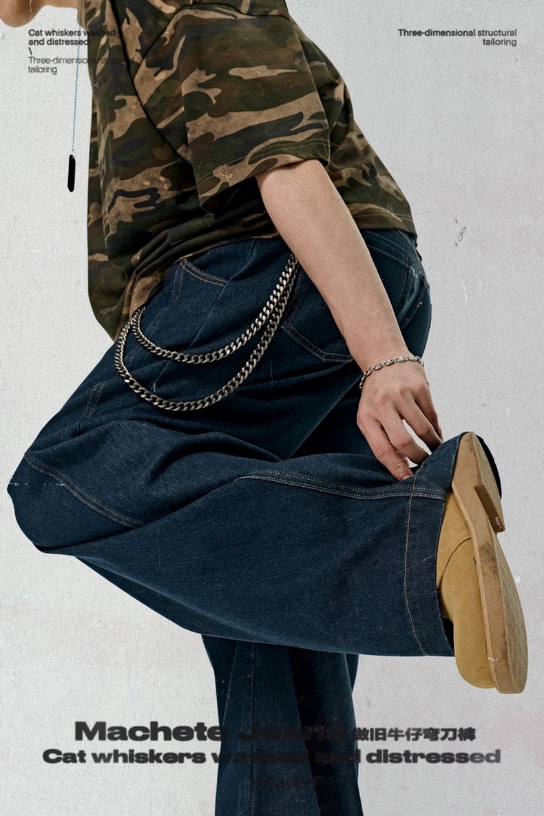 JieZhan 엄선 | Scimitar Pants 남성복 25 봄 여름 신작 스트리트 패션 브랜드 스트레이트 실루엣 워싱 데님 캐주얼 바지스토어 가기