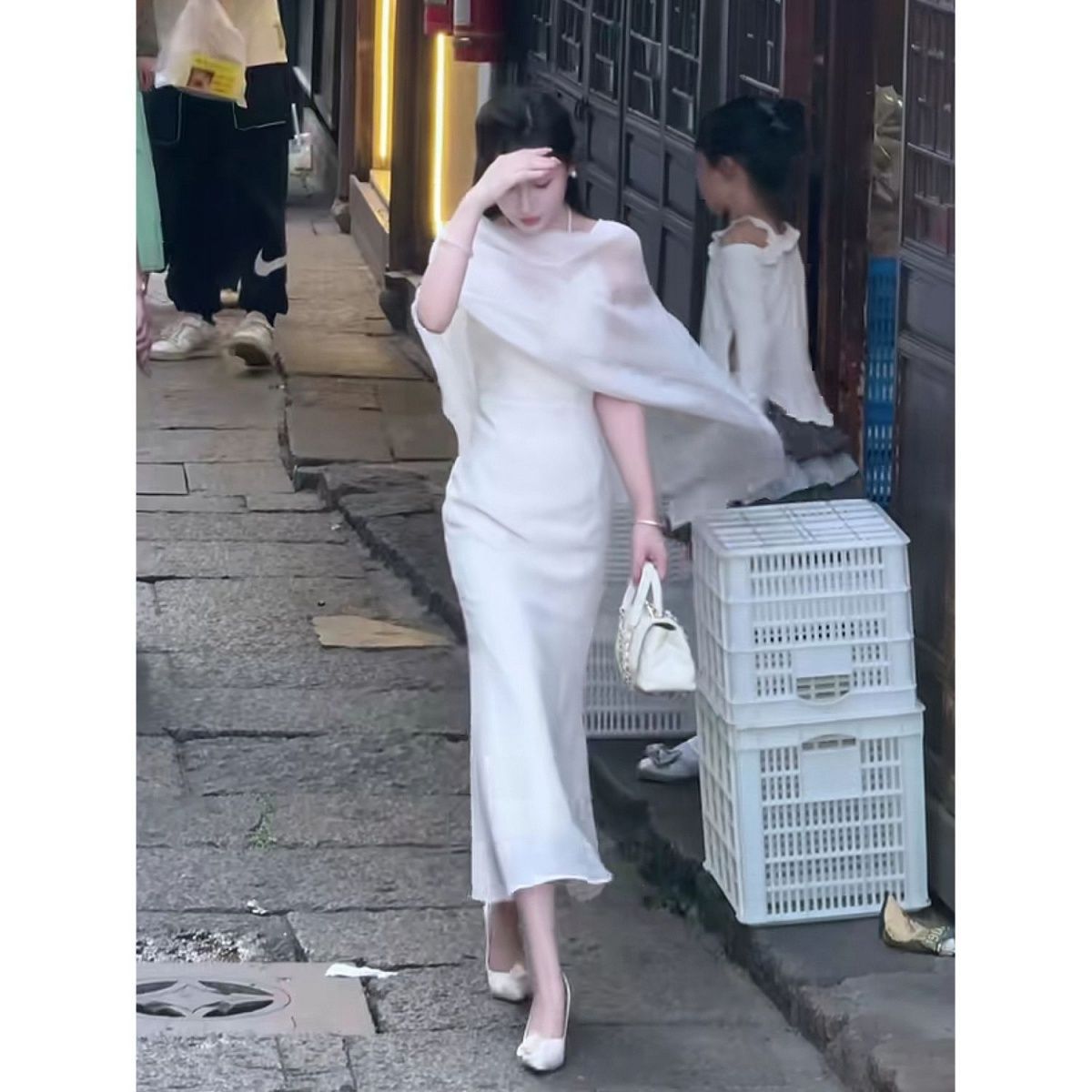 여름 신상 슈퍼 요정 패션 라이트 럭셔리 드레스 세트 틈새 피쉬테일 서스펜더 스커트 + 우아한 숄 투피스 세트스토어 가기