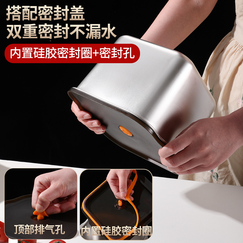 스테인레스 스틸 신선한 보관 상자 304 식품 등급 밀봉 상자 뚜껑 상업용 보관 그릇 스톨 스퀘어 박스 밀봉 뚜껑