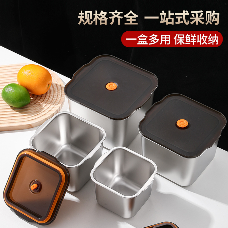 스테인레스 스틸 신선한 보관 상자 304 식품 등급 밀봉 상자 뚜껑 상업용 보관 그릇 스톨 스퀘어 박스 밀봉 뚜껑스토어 가기