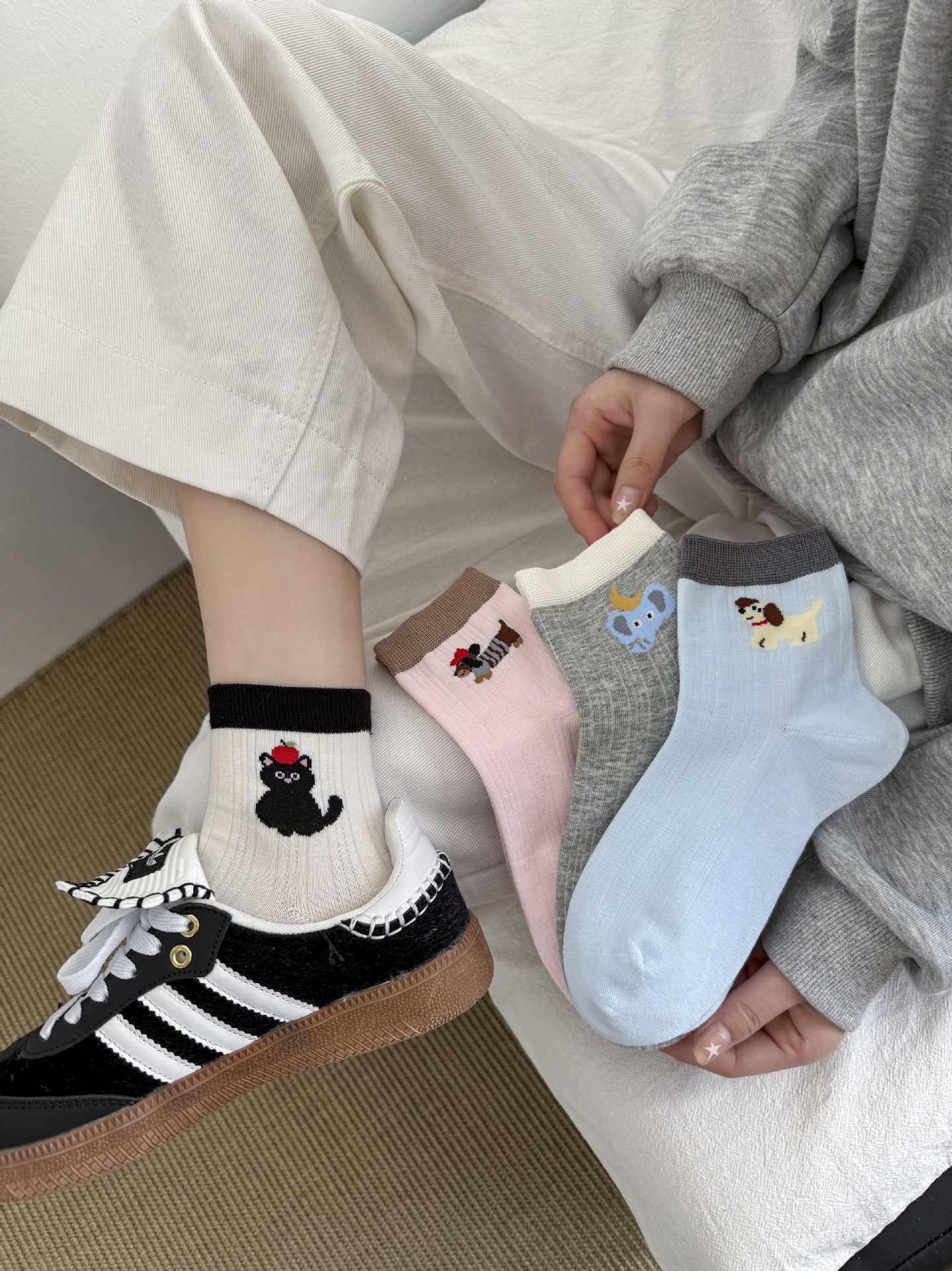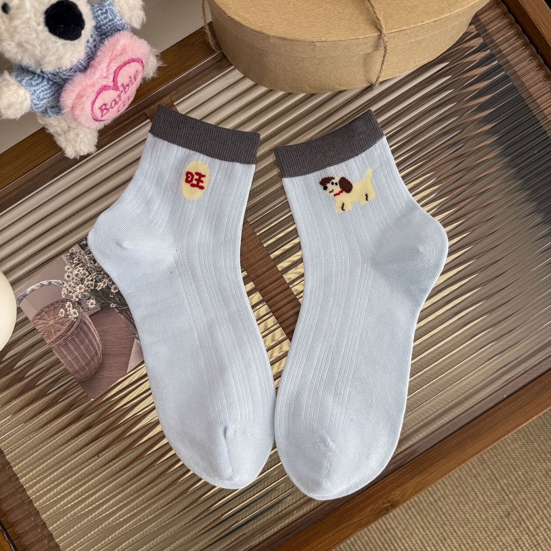 봄 여름 얇은 ab 스타일 한국식 강아지 양말 만화 양말 로우 컷 양말 중간 길이 양말 컬러 블록 닥스훈트 양말스토어 가기