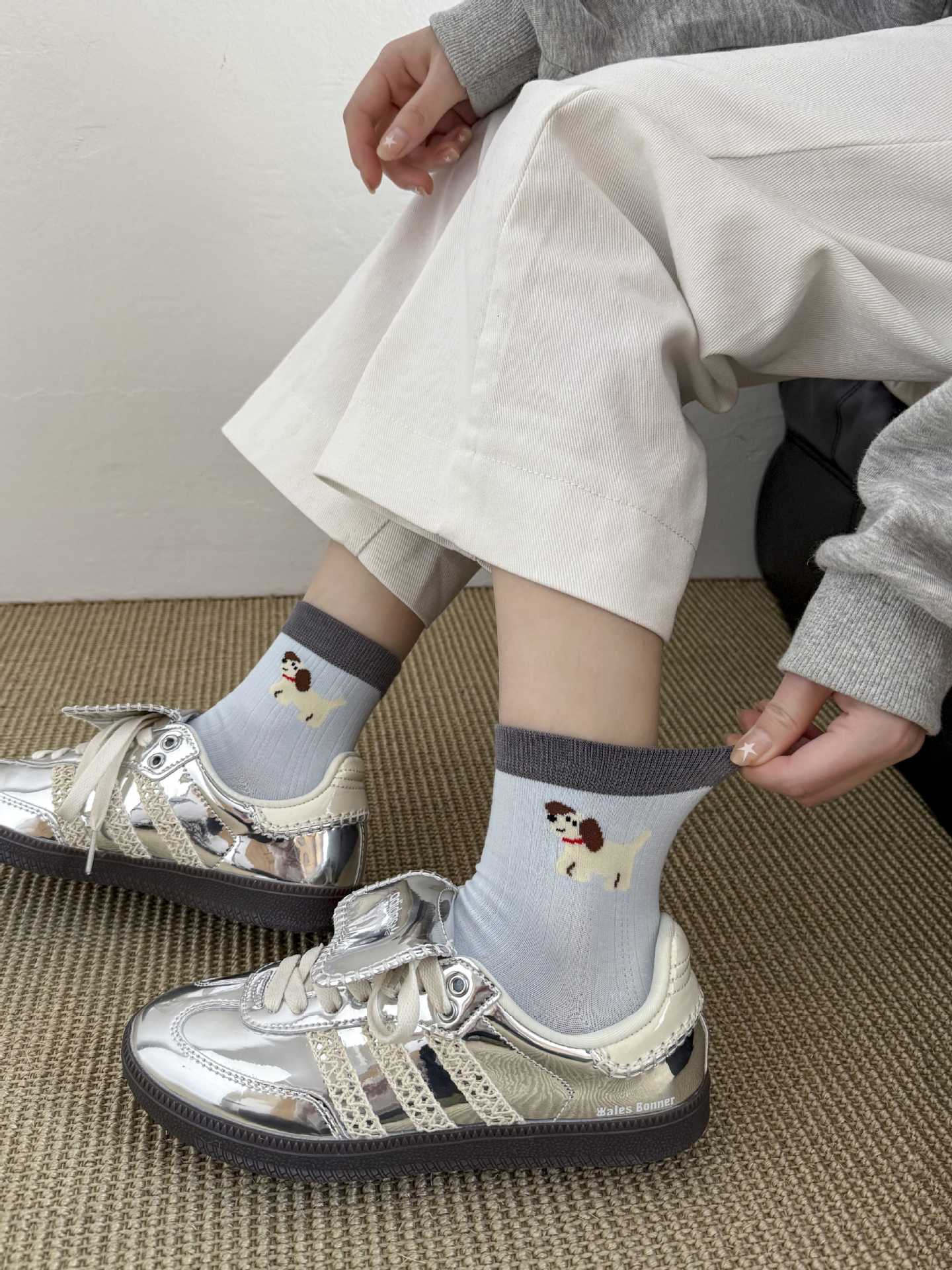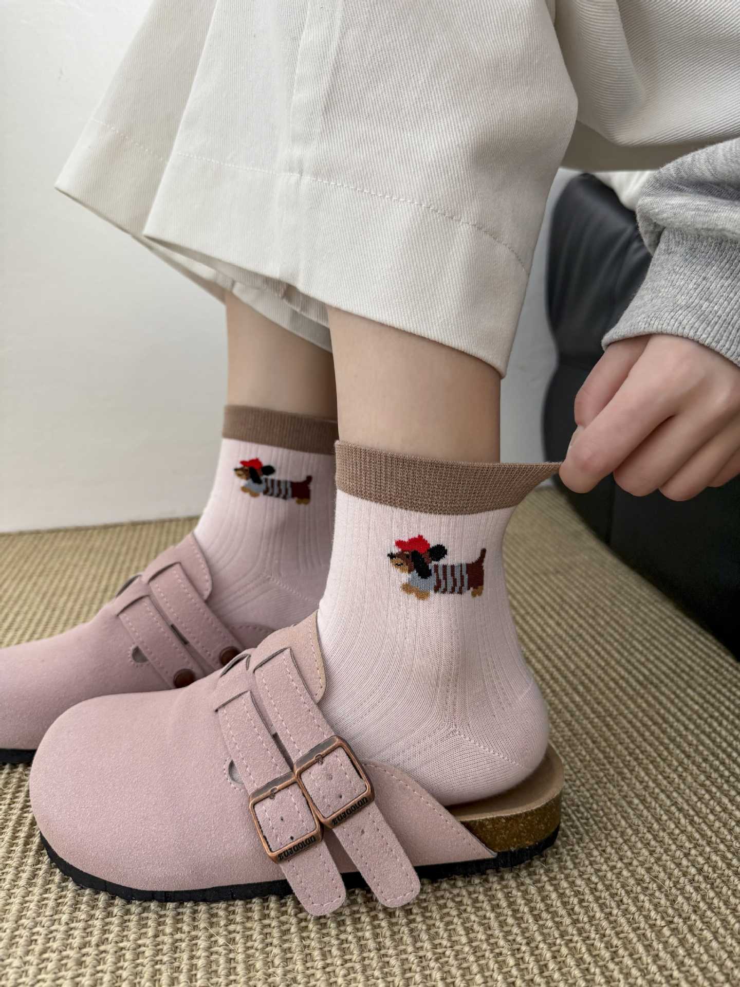 봄 여름 얇은 ab 스타일 한국식 강아지 양말 만화 양말 로우 컷 양말 중간 길이 양말 컬러 블록 닥스훈트 양말