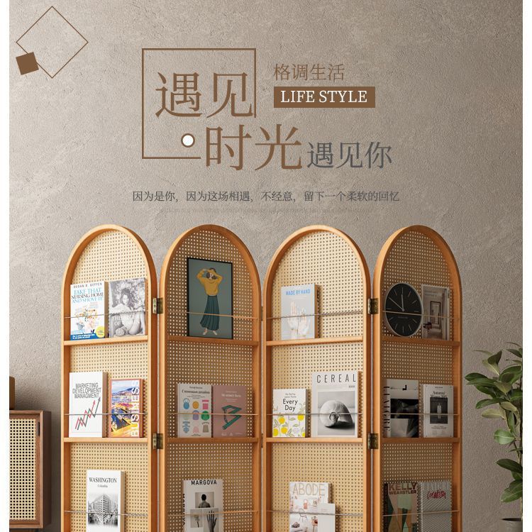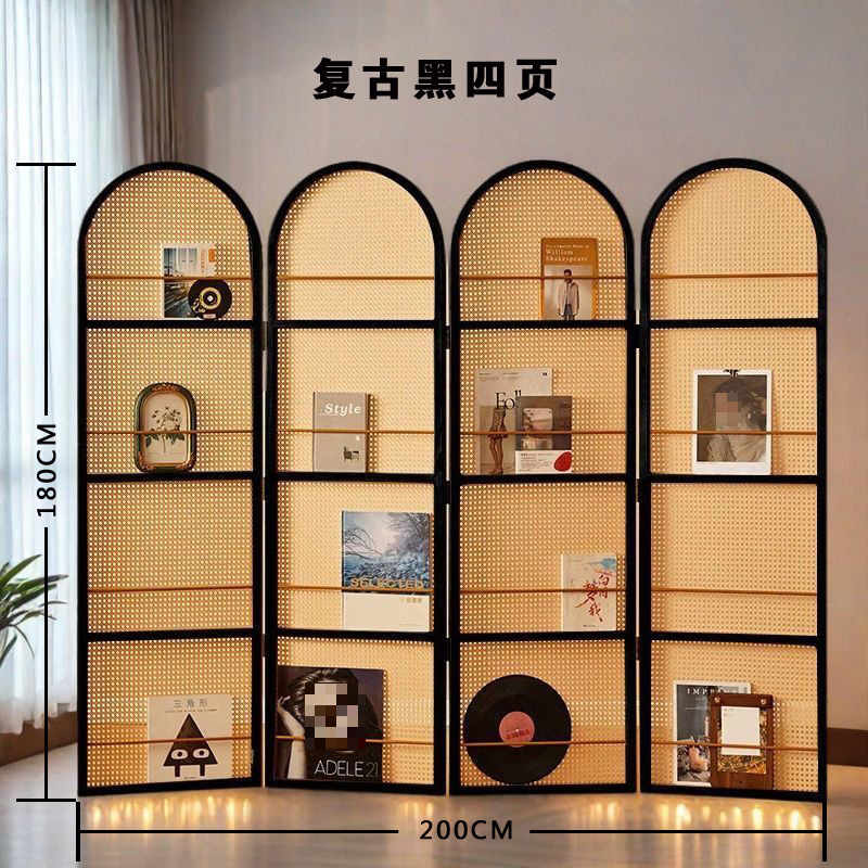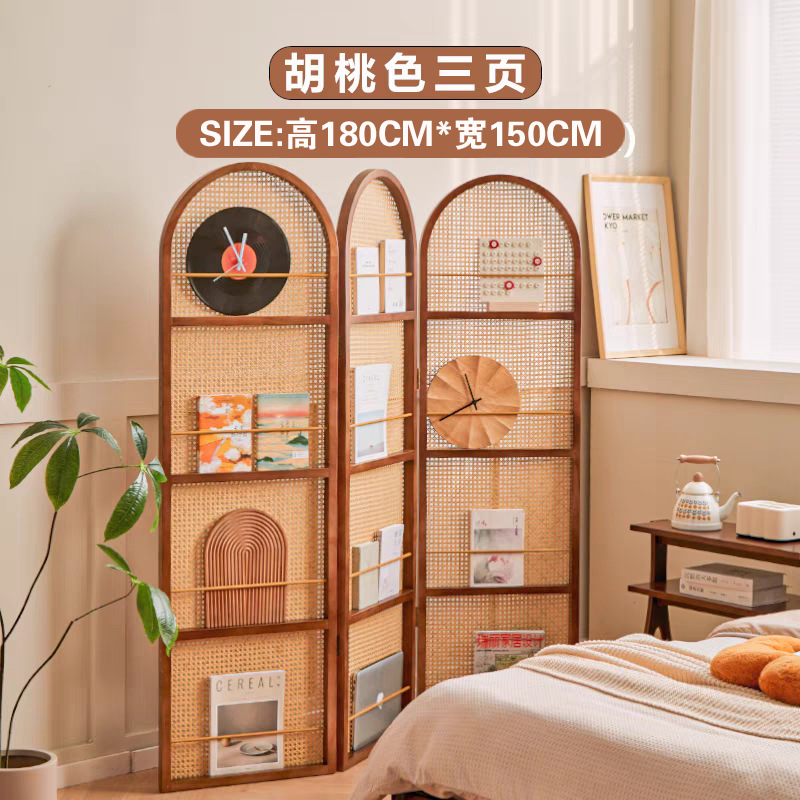 중국 복고풍 단단한 나무 등나무 스크린 거실 정문 침실 입구 파티션 현관 차단 접이식 잡지 랙