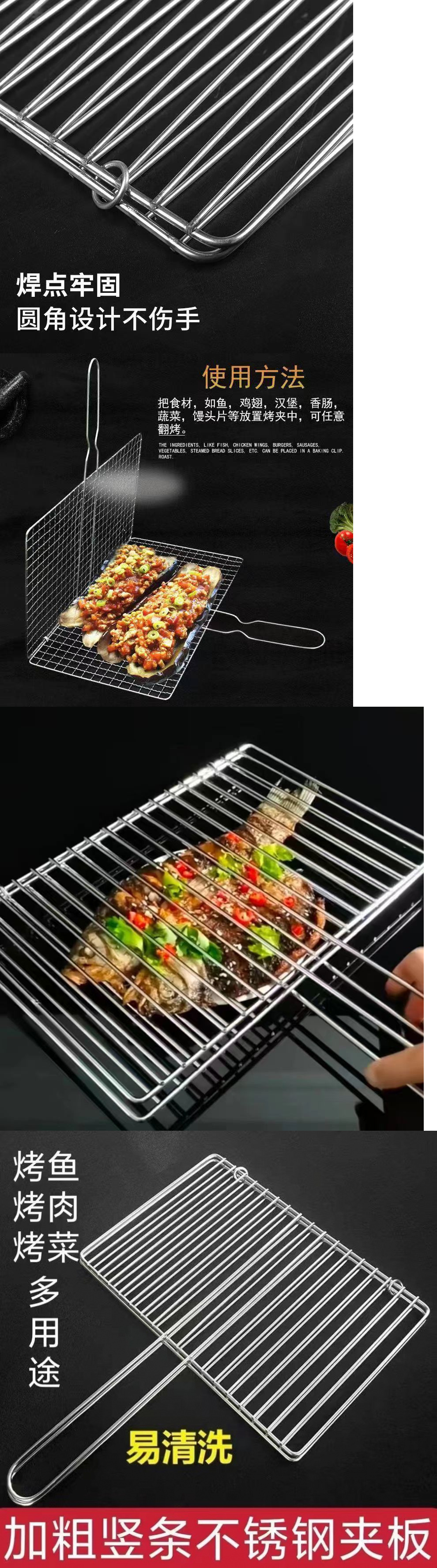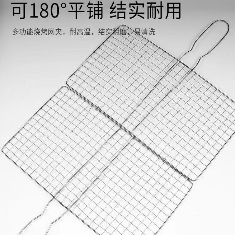 바베큐 그릴 스테인레스 스틸 그리드 직사각형 더블 레이어 생선 구이 클립 야채 구이 양고기 롤 크고 작은 크기 클립스토어 가기