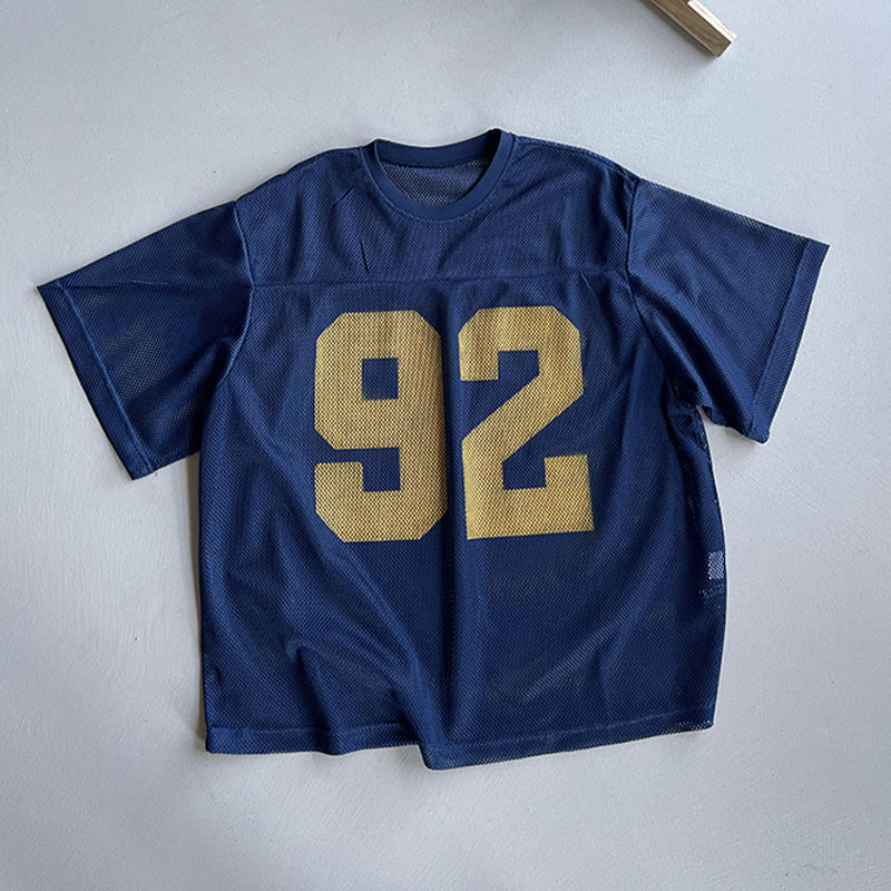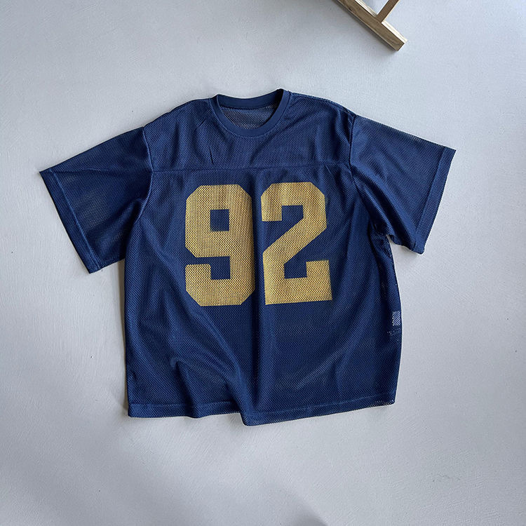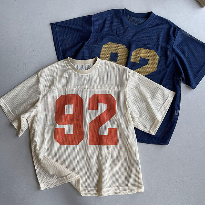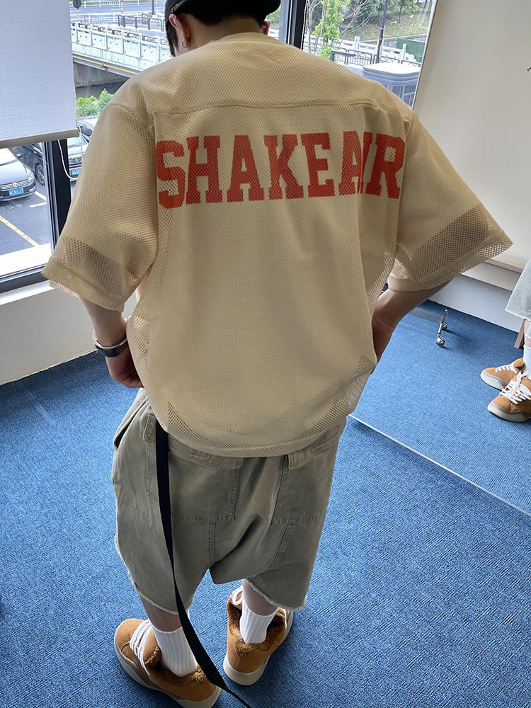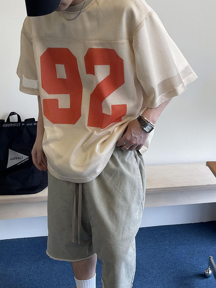 오버 사이즈 150.00kg 여름 레트로 느슨한 프로필 반팔 남자의 통기성 메쉬 인쇄 할로우 라운드 넥 저지 2스토어 가기
