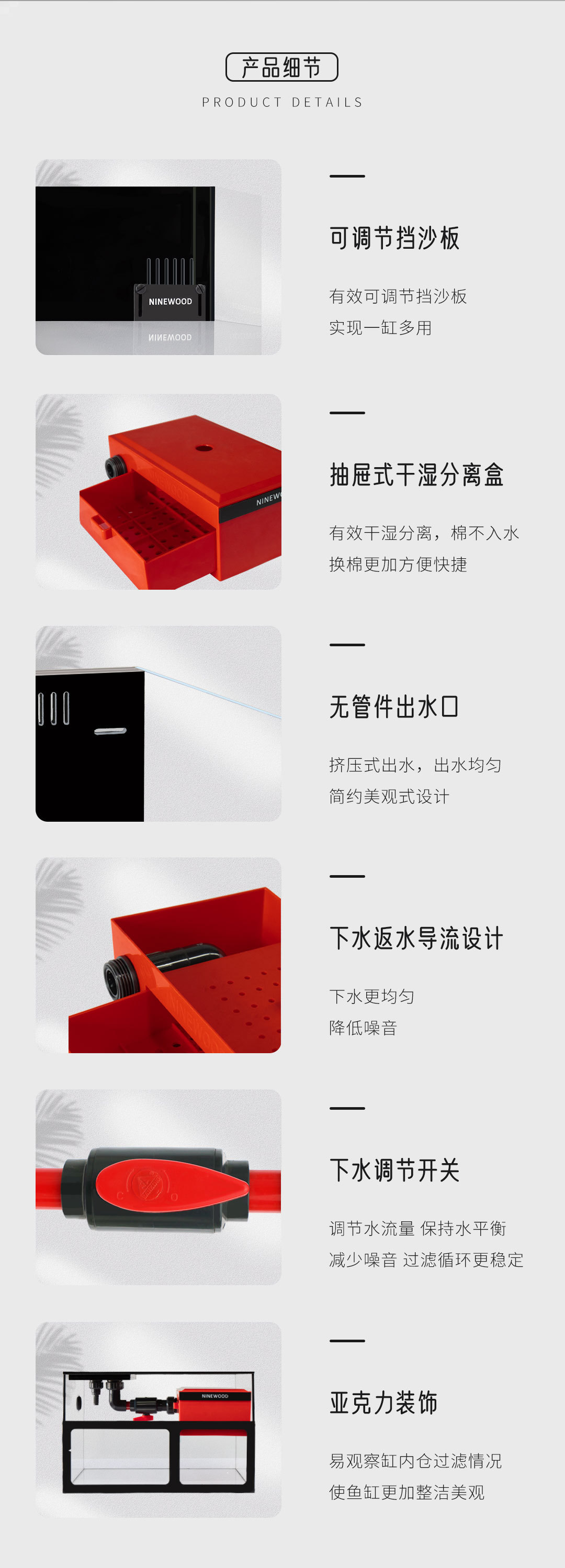 NINEWOOD 긴 물체 반딧불이 매우 좁은 통합 하단 필터 거실 작은 데스크탑 순환 바닥 필터 어항스토어 가기