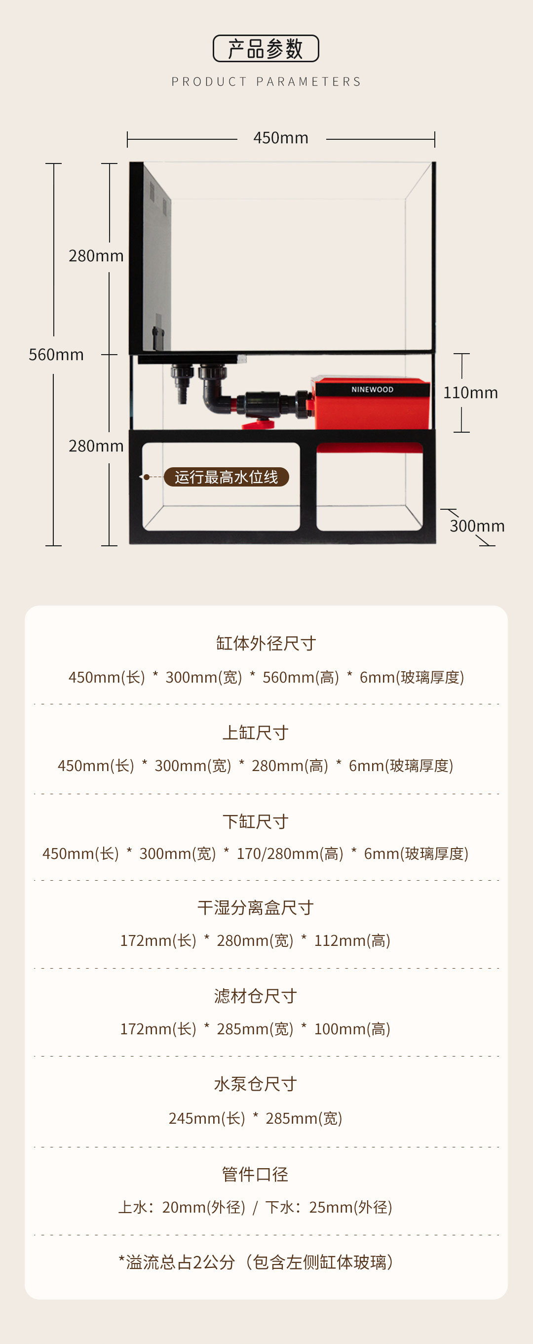 NINEWOOD 긴 물체 반딧불이 매우 좁은 통합 하단 필터 거실 작은 데스크탑 순환 바닥 필터 어항