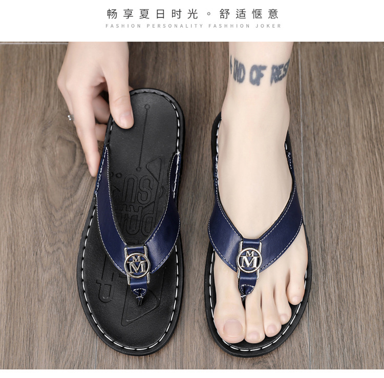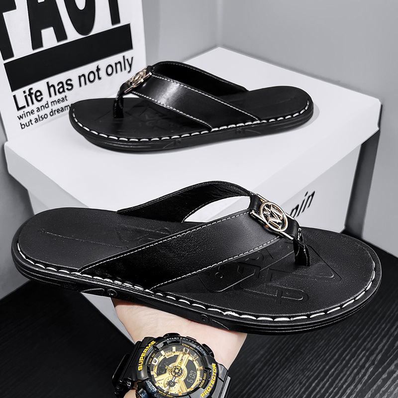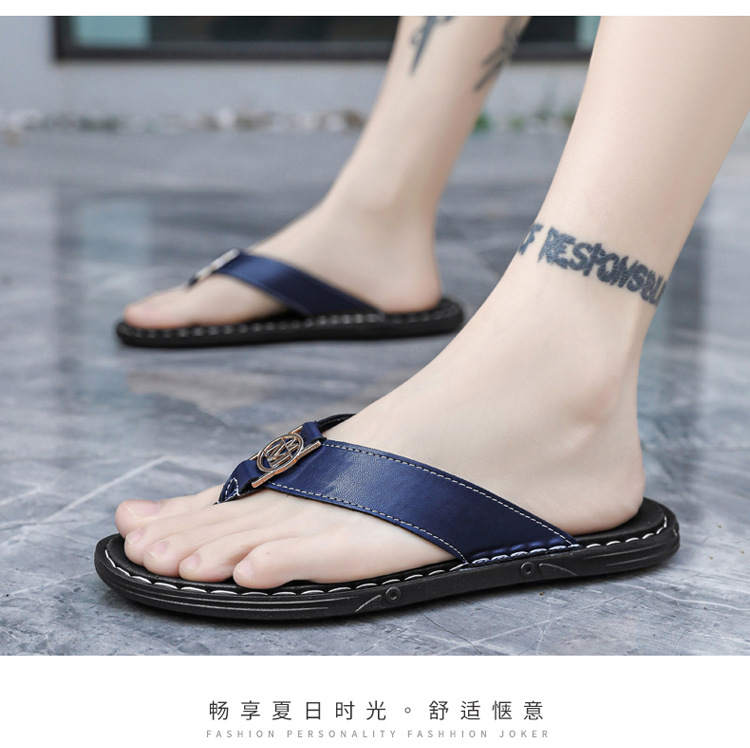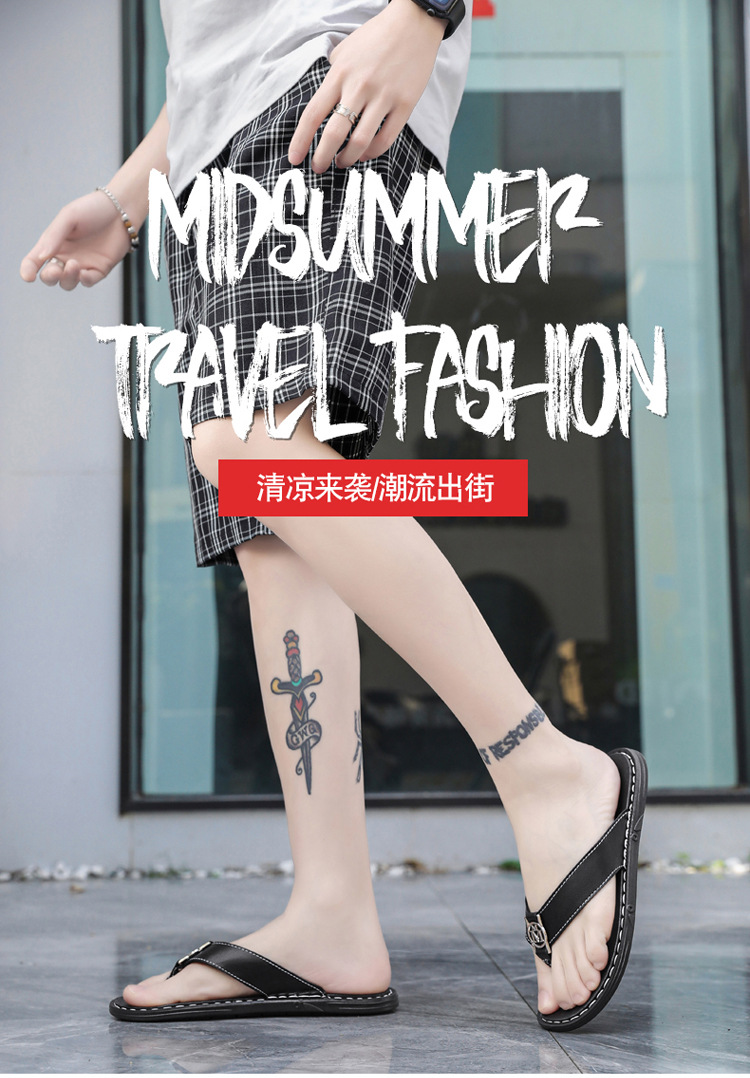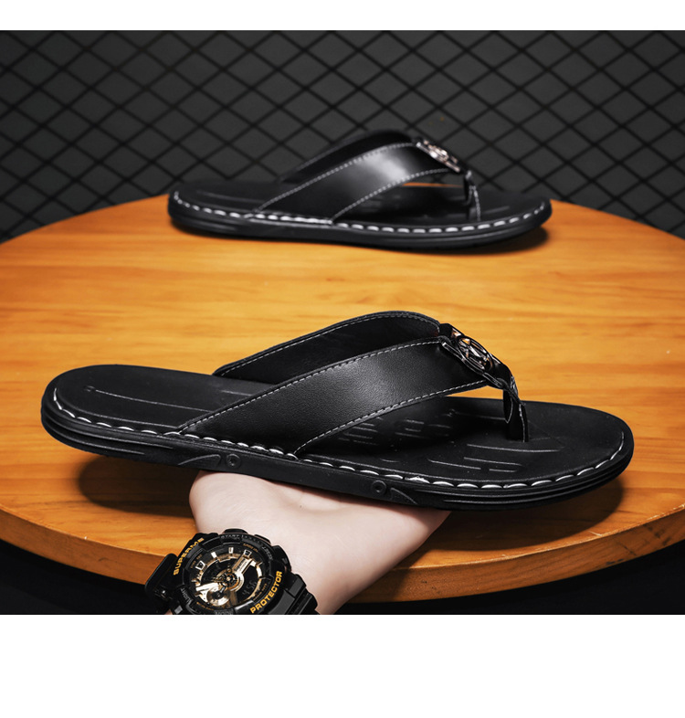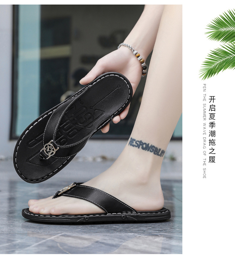 남성용 슬리퍼, 여름 캐주얼, 통기성, 미끄럼 방지, 야외 슬리퍼, 맞춤형 비치 슈즈, 비치 가죽 슬리퍼, 트렌디스토어 가기