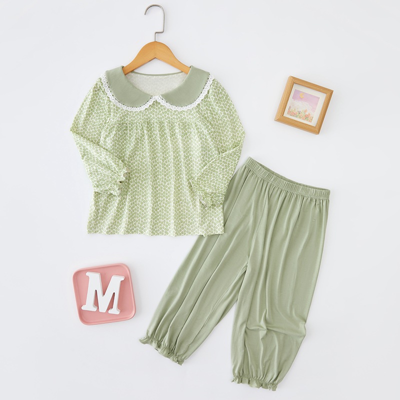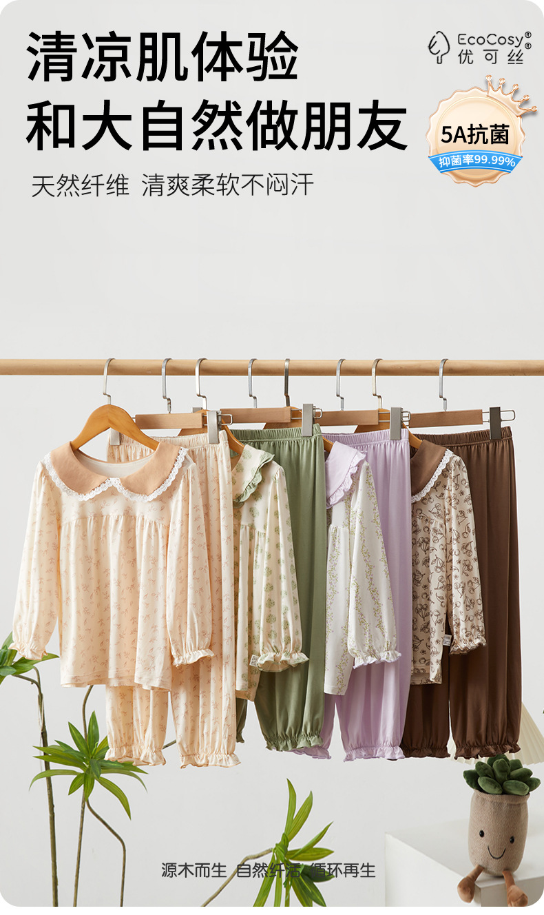 여름 어린이 홈 옷 소년 소녀를위한 얇은 통기성 속옷 세트 대형 어린이를위한 Youkosi 잠옷 에어컨 옷스토어 가기