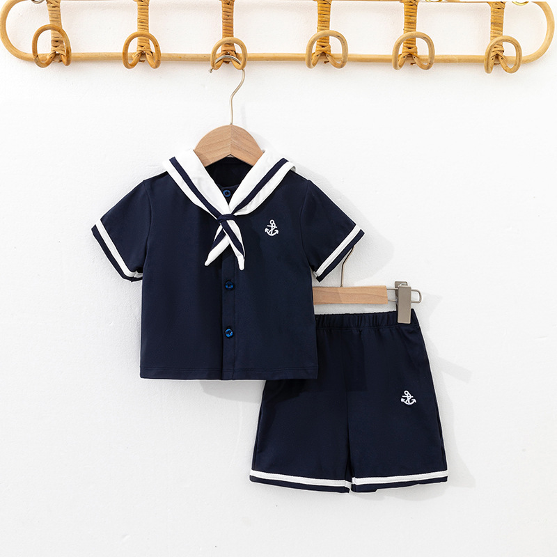 유치원 여름 의류 영국 아카데미 스타일 어린이 해군 칼라 반팔 졸업 사진 선원 세트 투피스 국경 세트