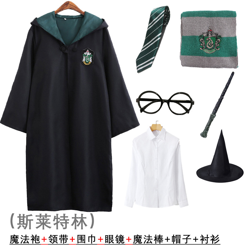 • 슬리데린 마법 가운 + 넥타이 + 스카프 + 안경 + 마술 지팡이 + 모자
