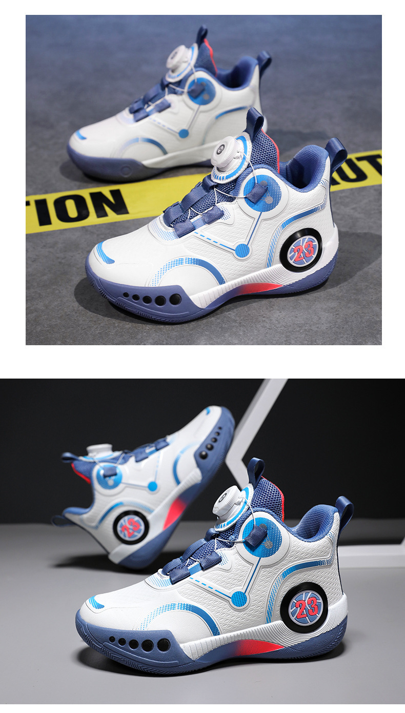 어린이 농구화 2024 봄과 가을 인기 소년 실용 운동화, 중대형 어린이 미끄럼 방지 회전 버튼 운동화
