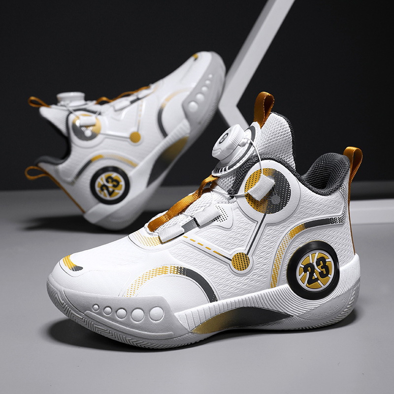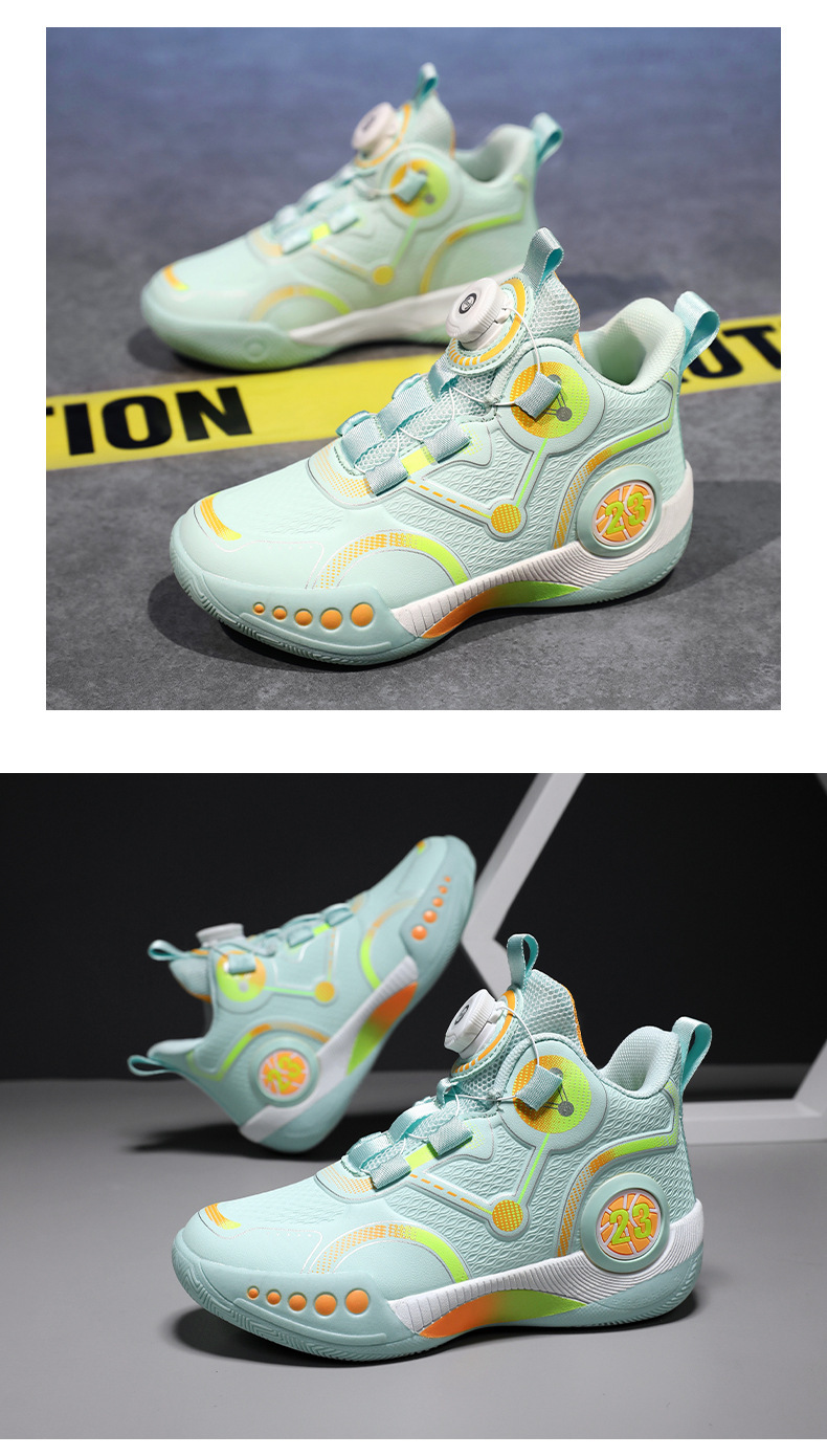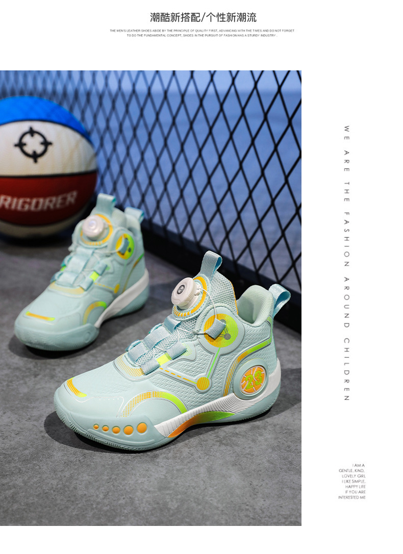 儿童篮球鞋2024春秋爆款男童实战训练鞋中大童防滑旋转纽扣跑步鞋