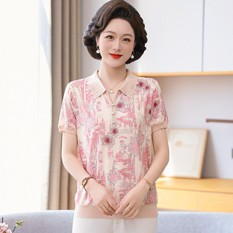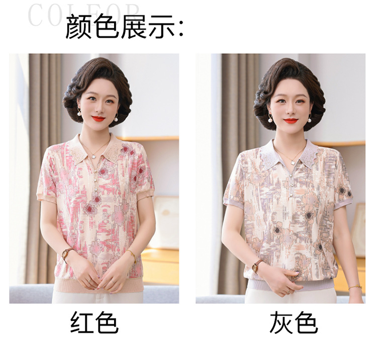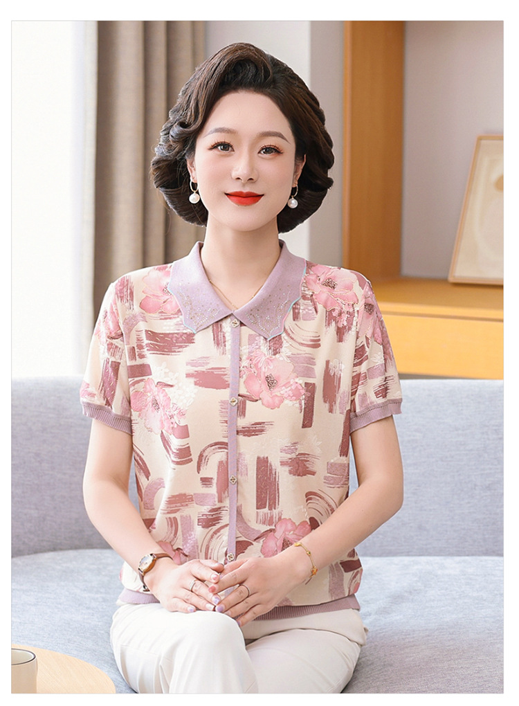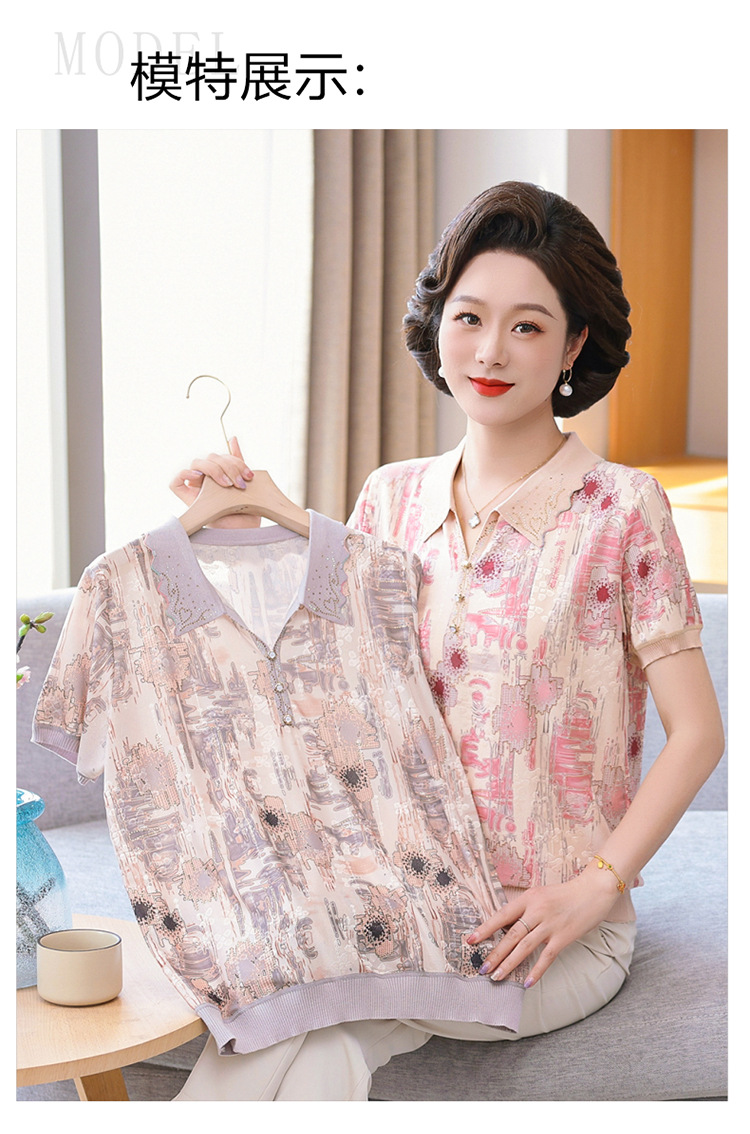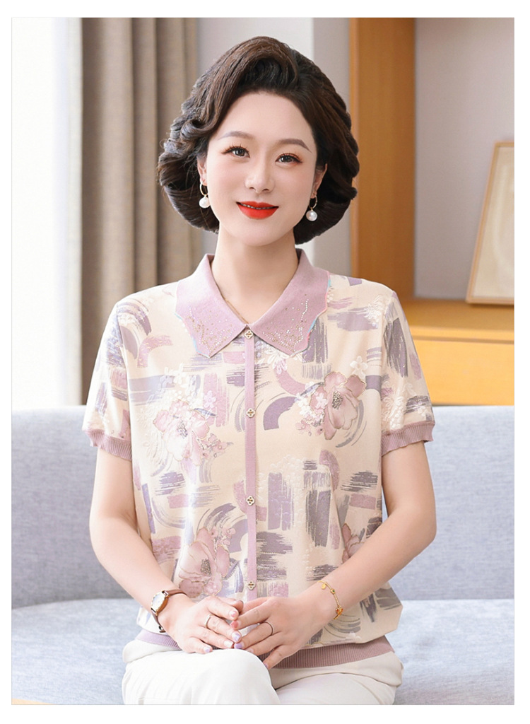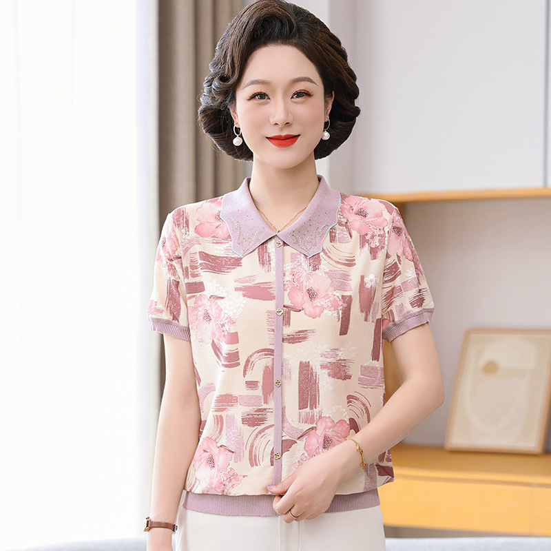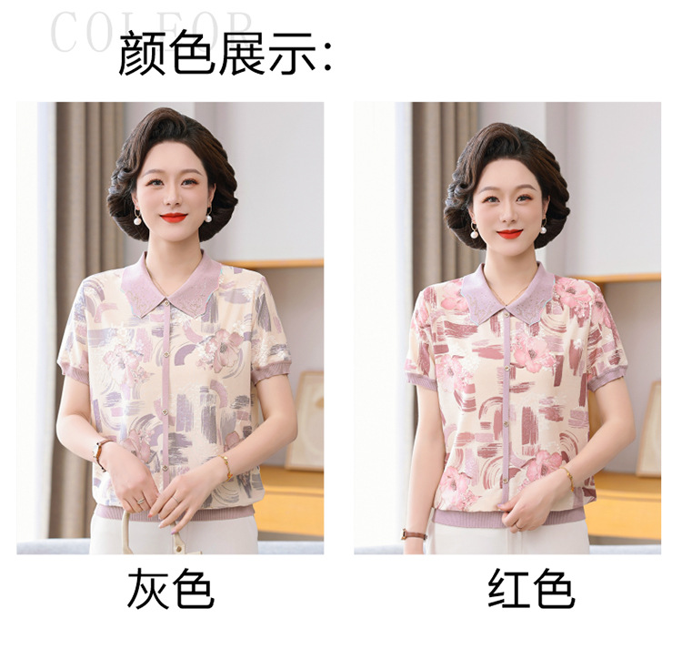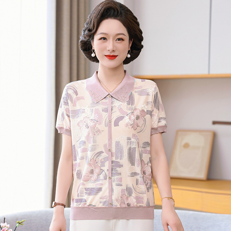 새로운 스타일 반팔 아이스 실크 탑 여름 어머니 중년 및 노인 작은 셔츠 티셔츠 여성 유행 셔츠 Lel 여름 옷스토어 가기