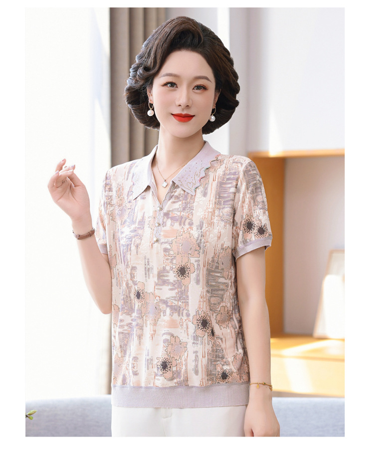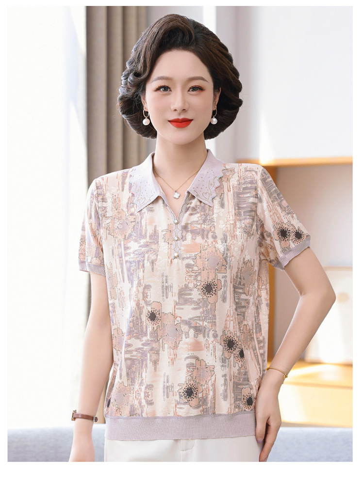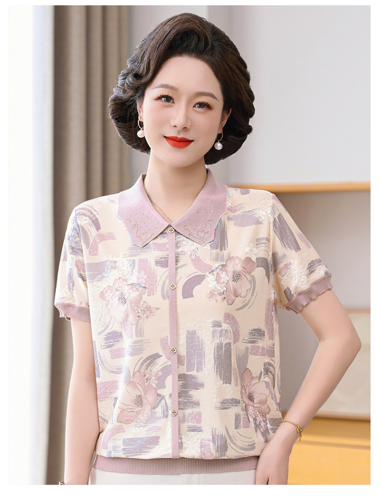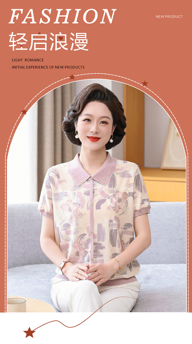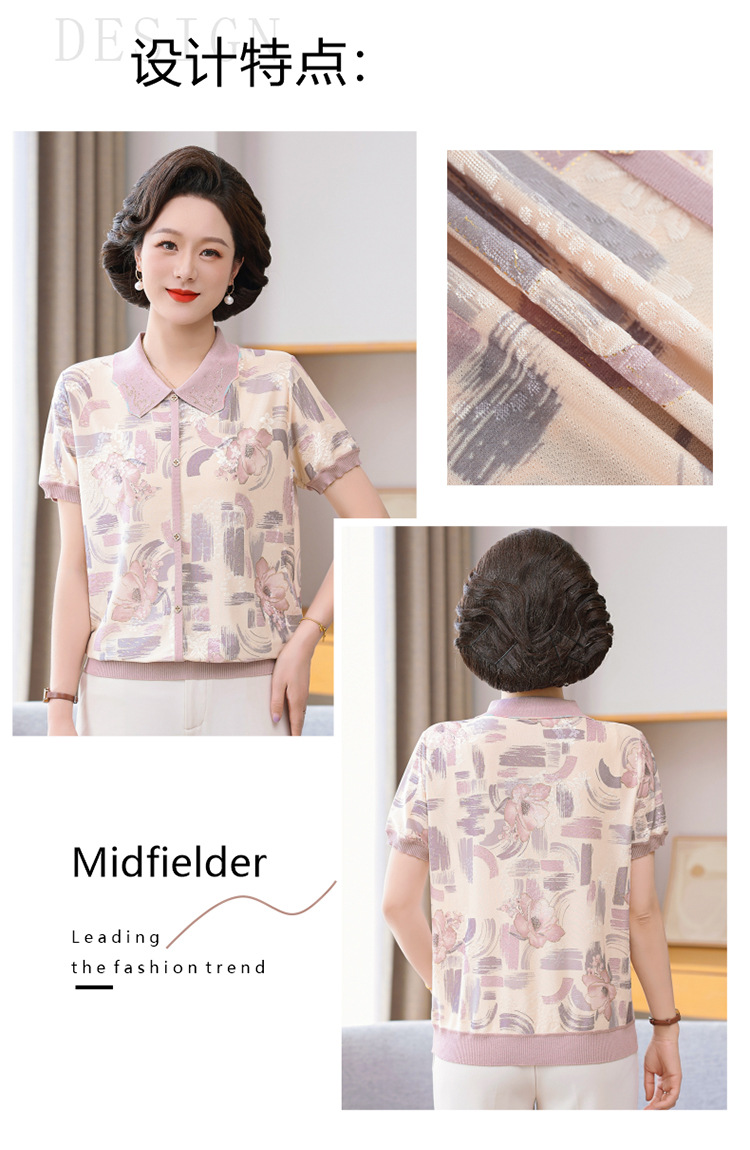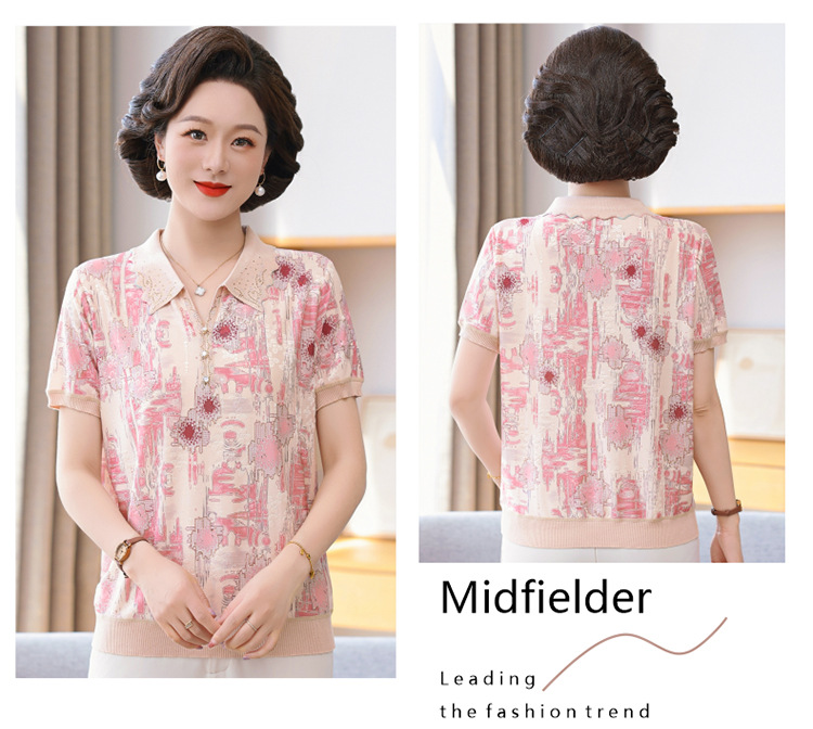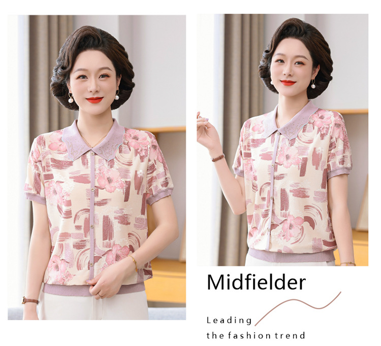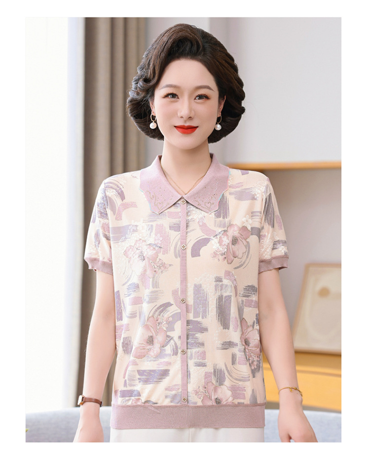 새로운 스타일 반팔 아이스 실크 탑 여름 어머니 중년 및 노인 작은 셔츠 티셔츠 여성 유행 셔츠 Lel 여름 옷스토어 가기