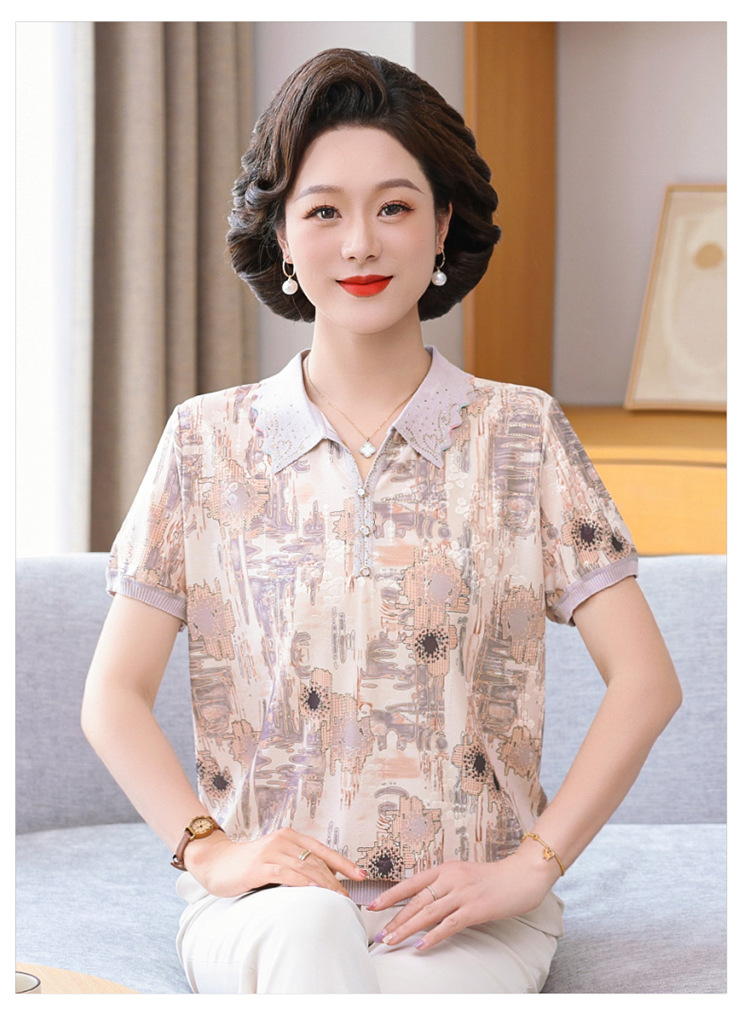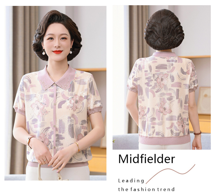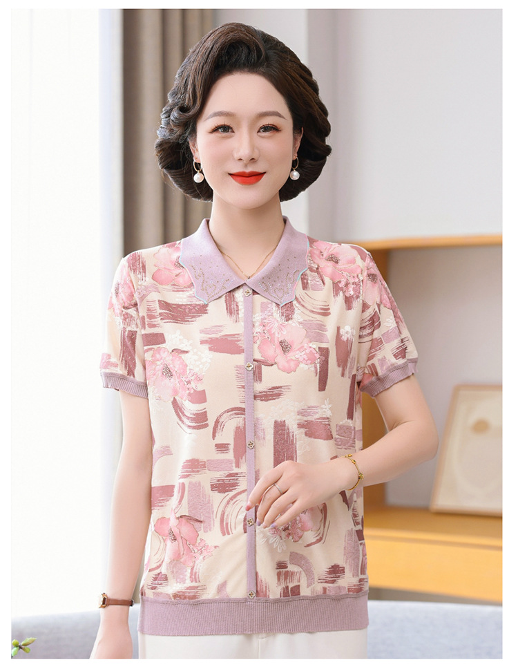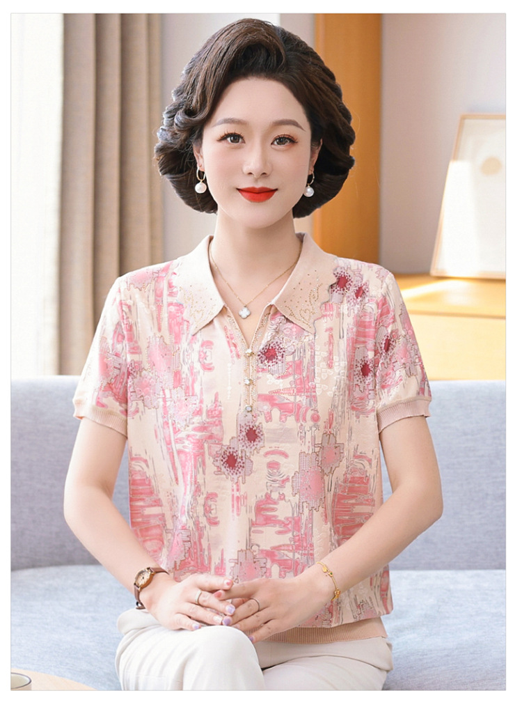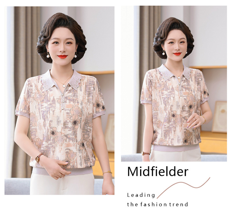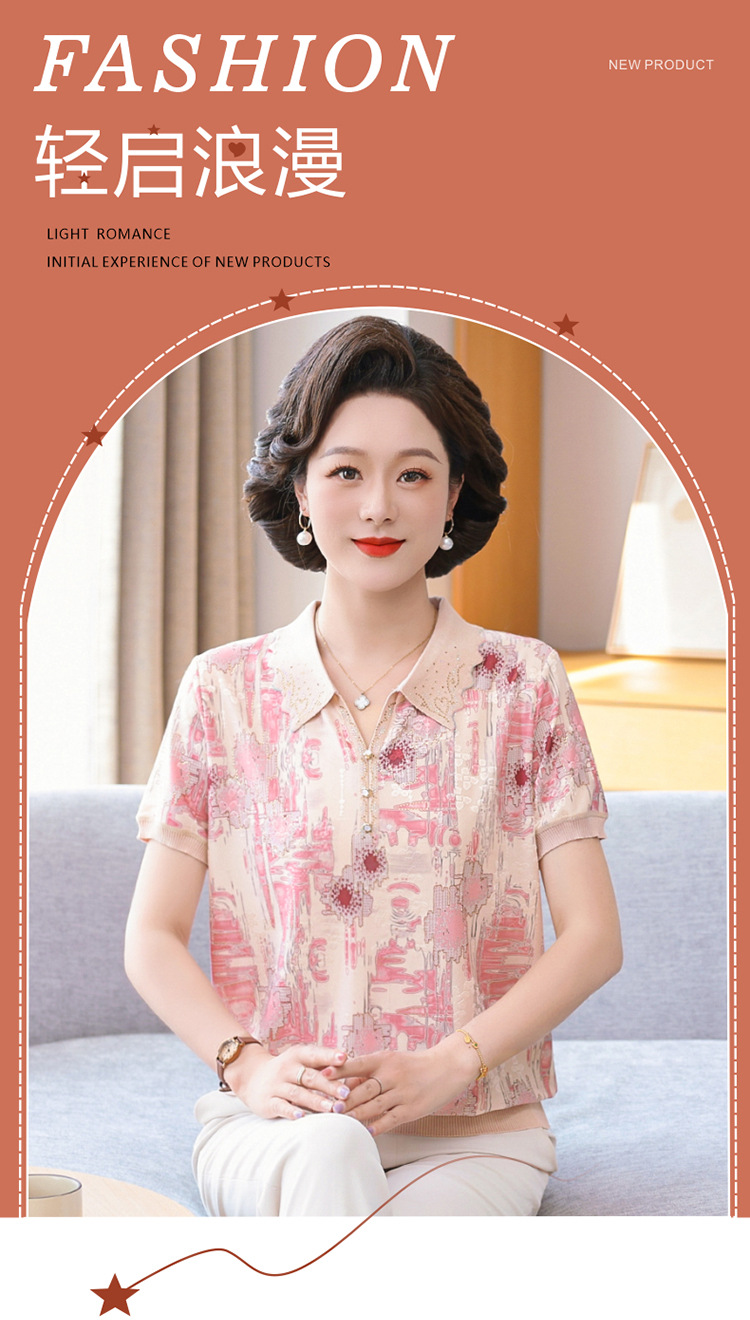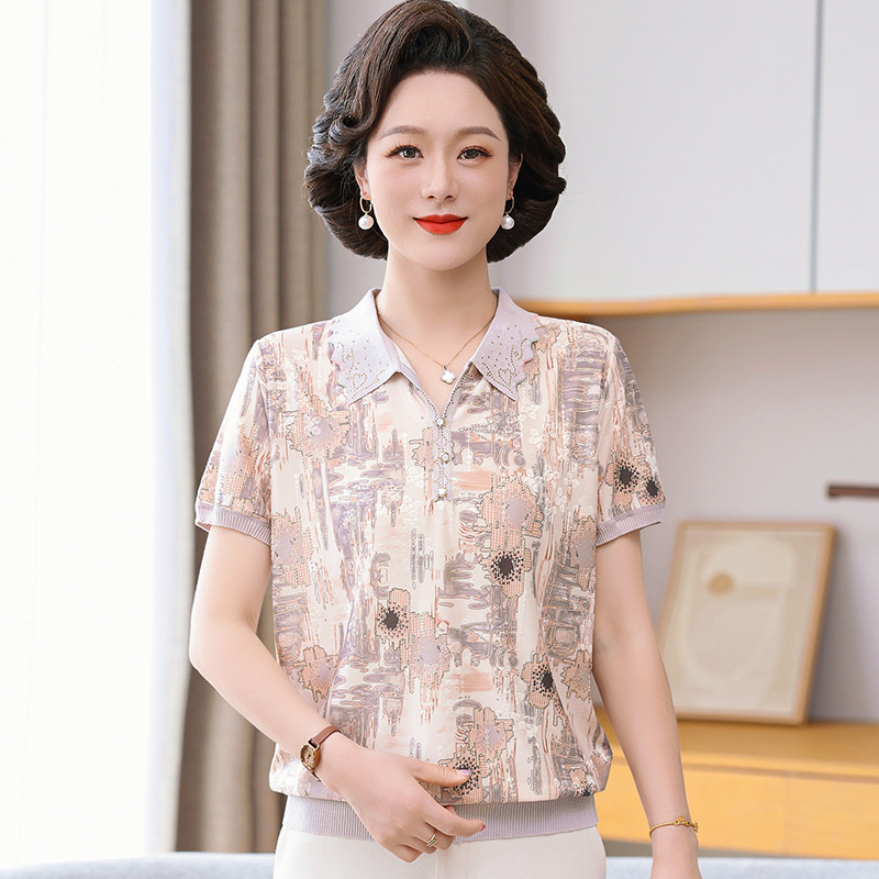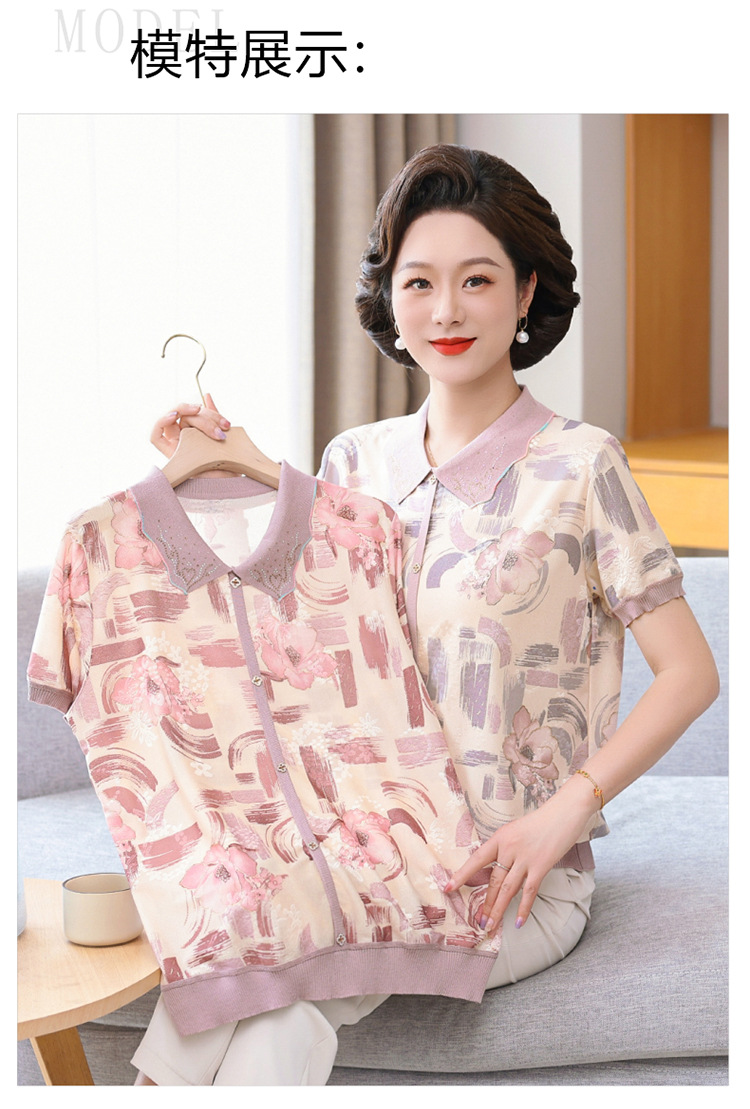 새로운 스타일 반팔 아이스 실크 탑 여름 어머니 중년 및 노인 작은 셔츠 티셔츠 여성 유행 셔츠 Lel 여름 옷스토어 가기