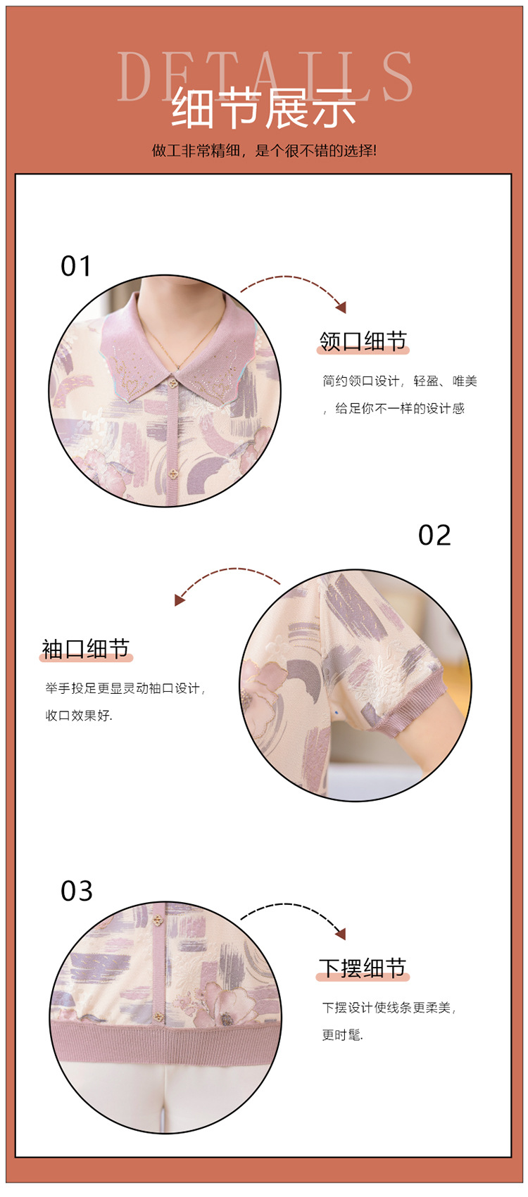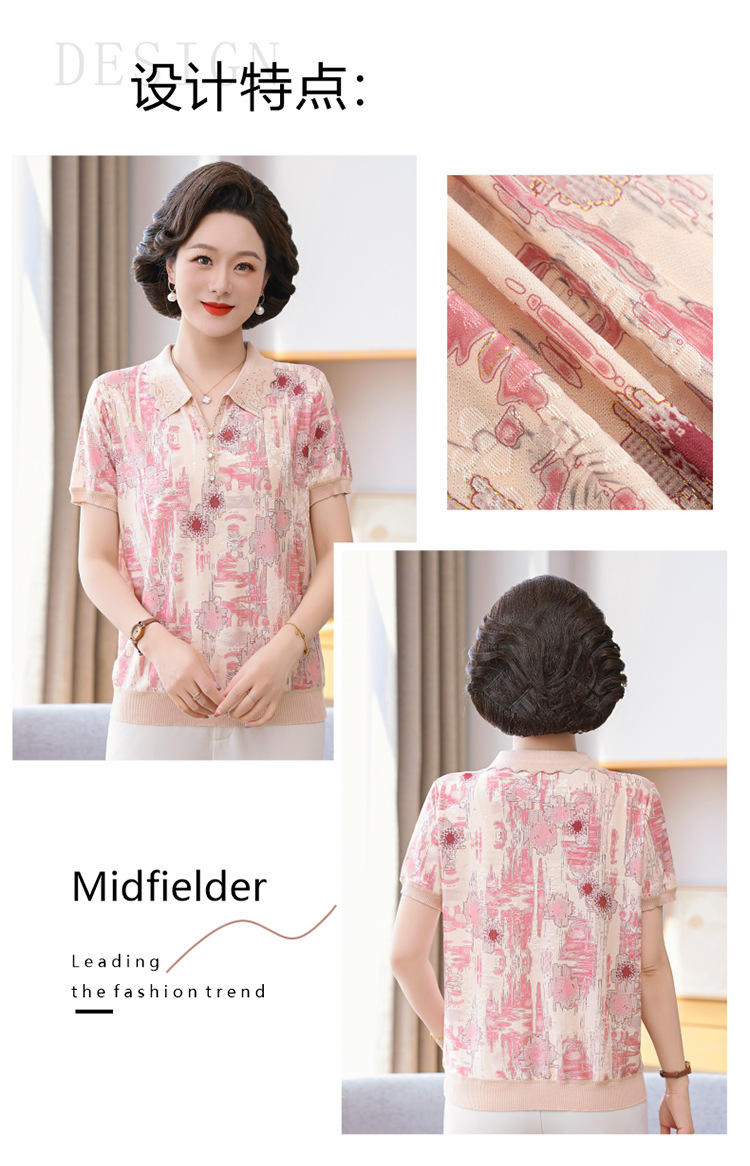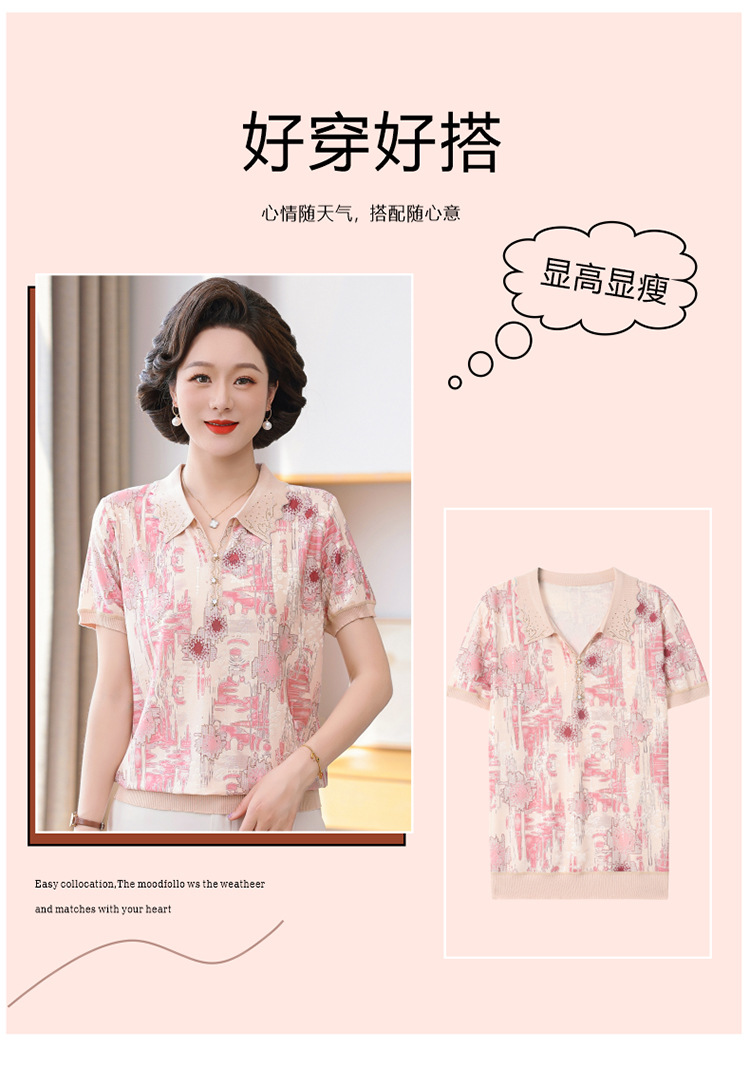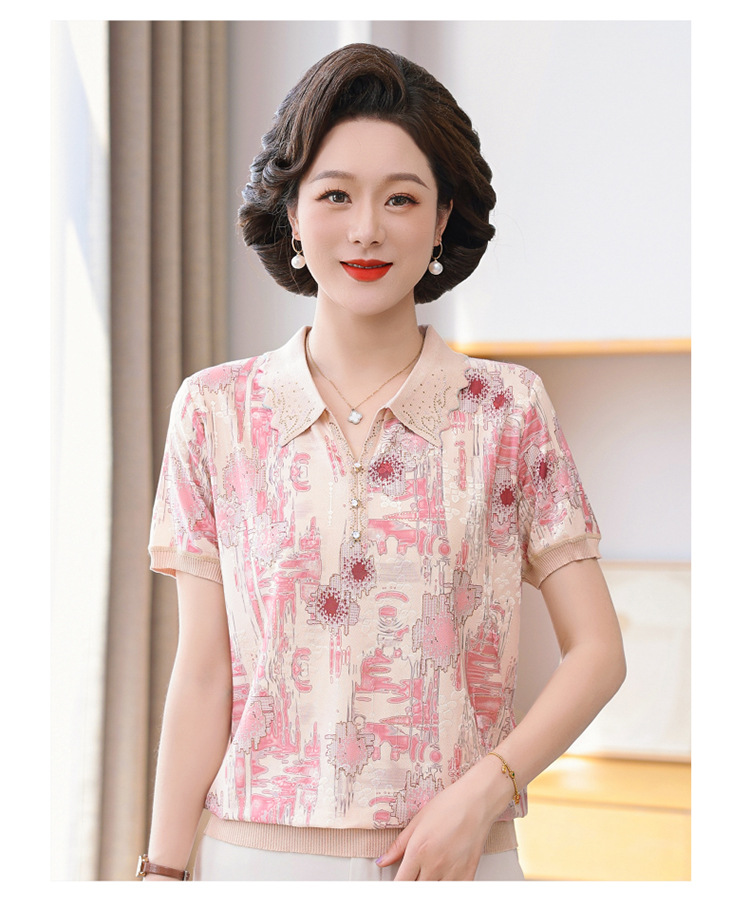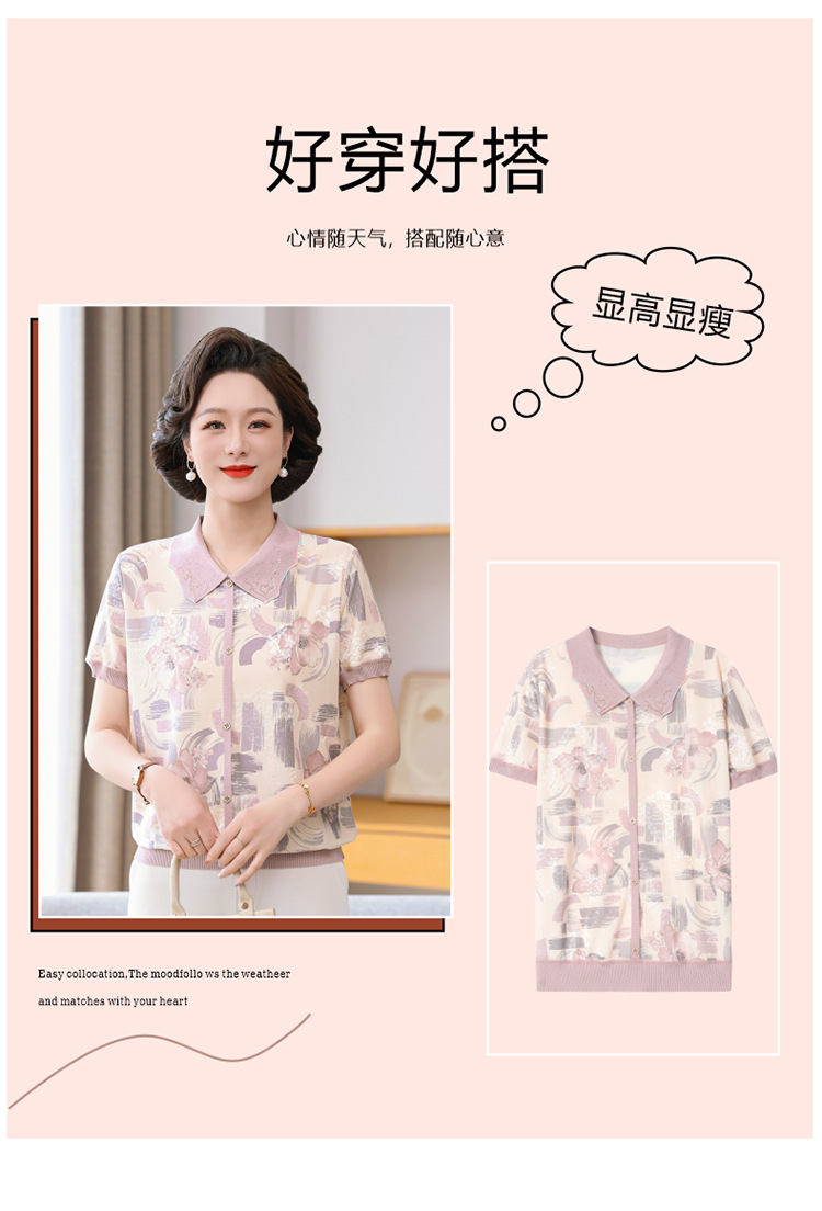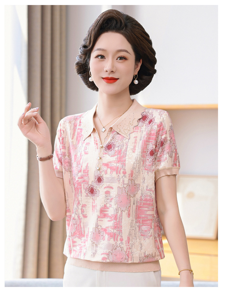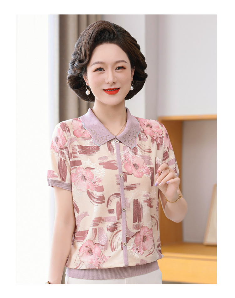 새로운 스타일 반팔 아이스 실크 탑 여름 어머니 중년 및 노인 작은 셔츠 티셔츠 여성 유행 셔츠 Lel 여름 옷스토어 가기