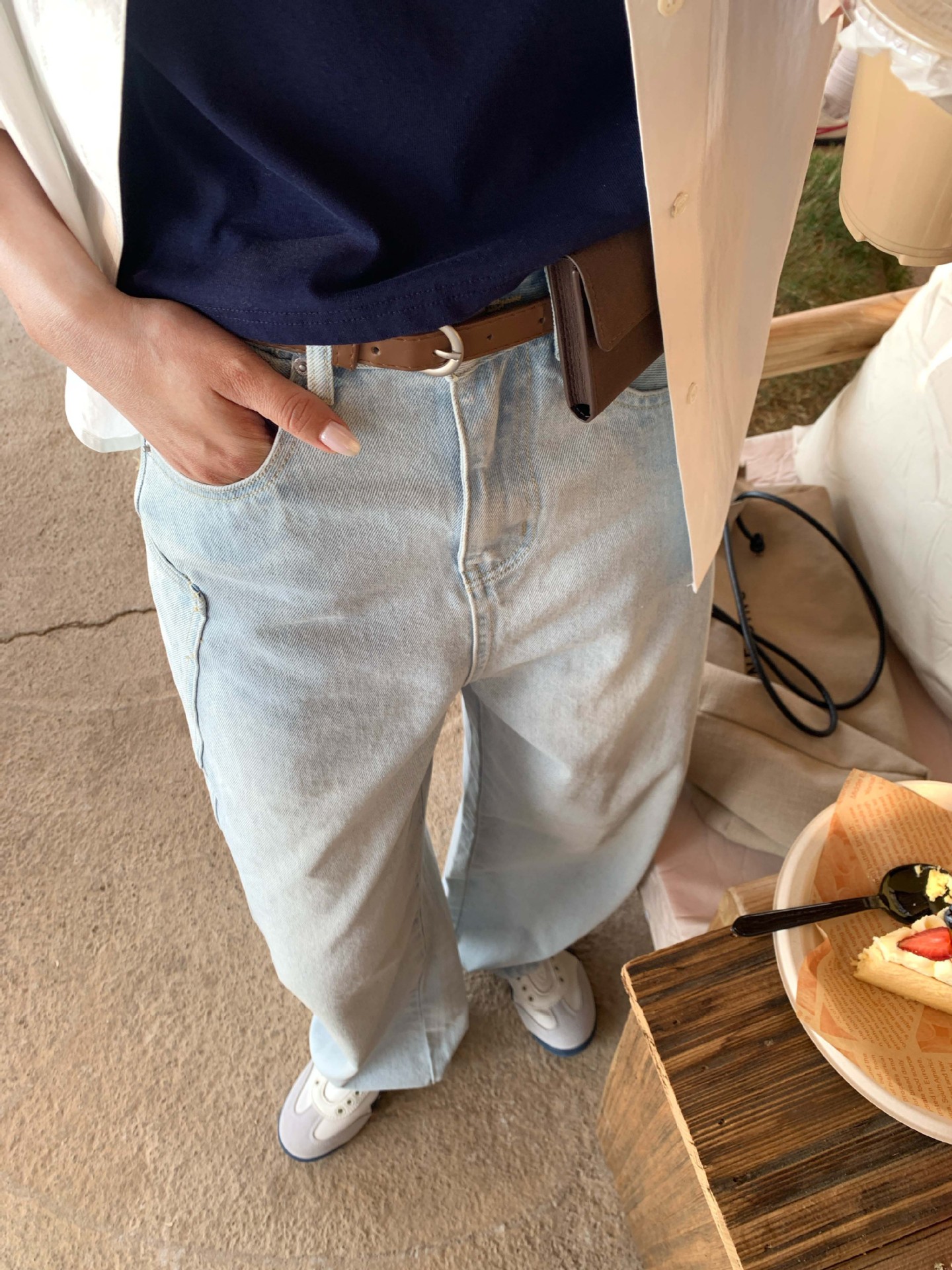 황정 멀티 포켓 금속 버클 높은 허리 넓은 다리 시미 터 바지 여성 2025 여름 레트로 캐주얼 청바지 520327