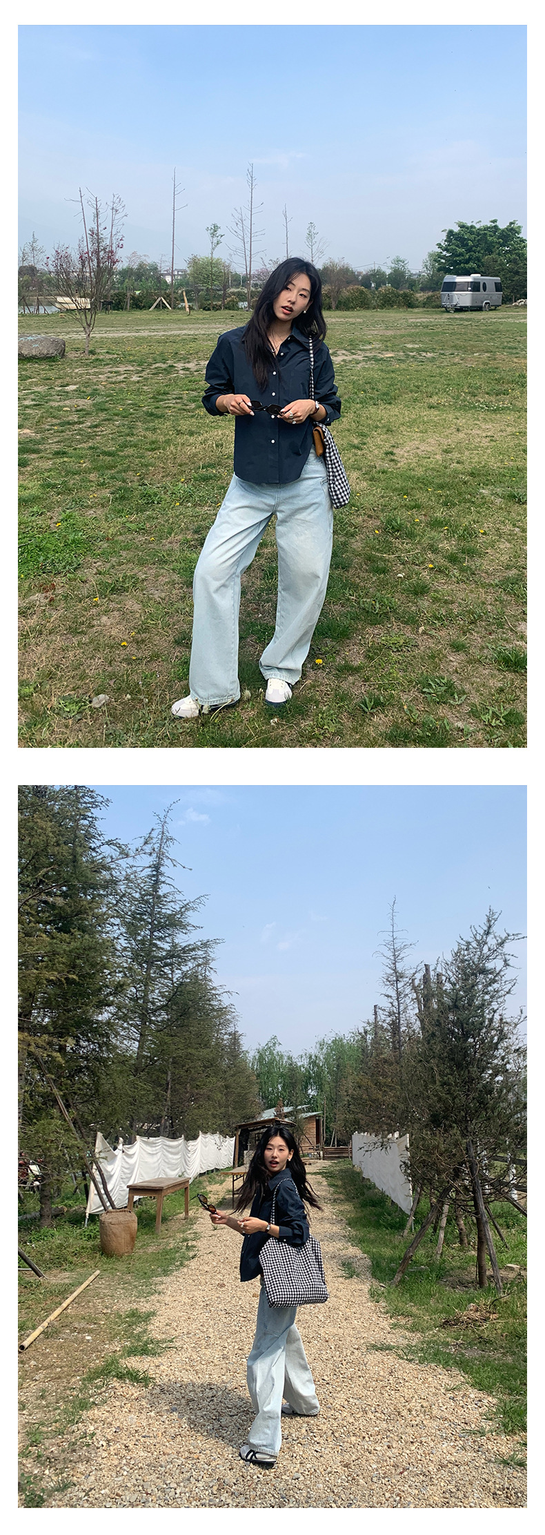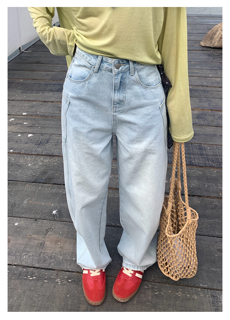 황정 멀티 포켓 금속 버클 높은 허리 넓은 다리 시미 터 바지 여성 2025 여름 레트로 캐주얼 청바지 520327스토어 가기
