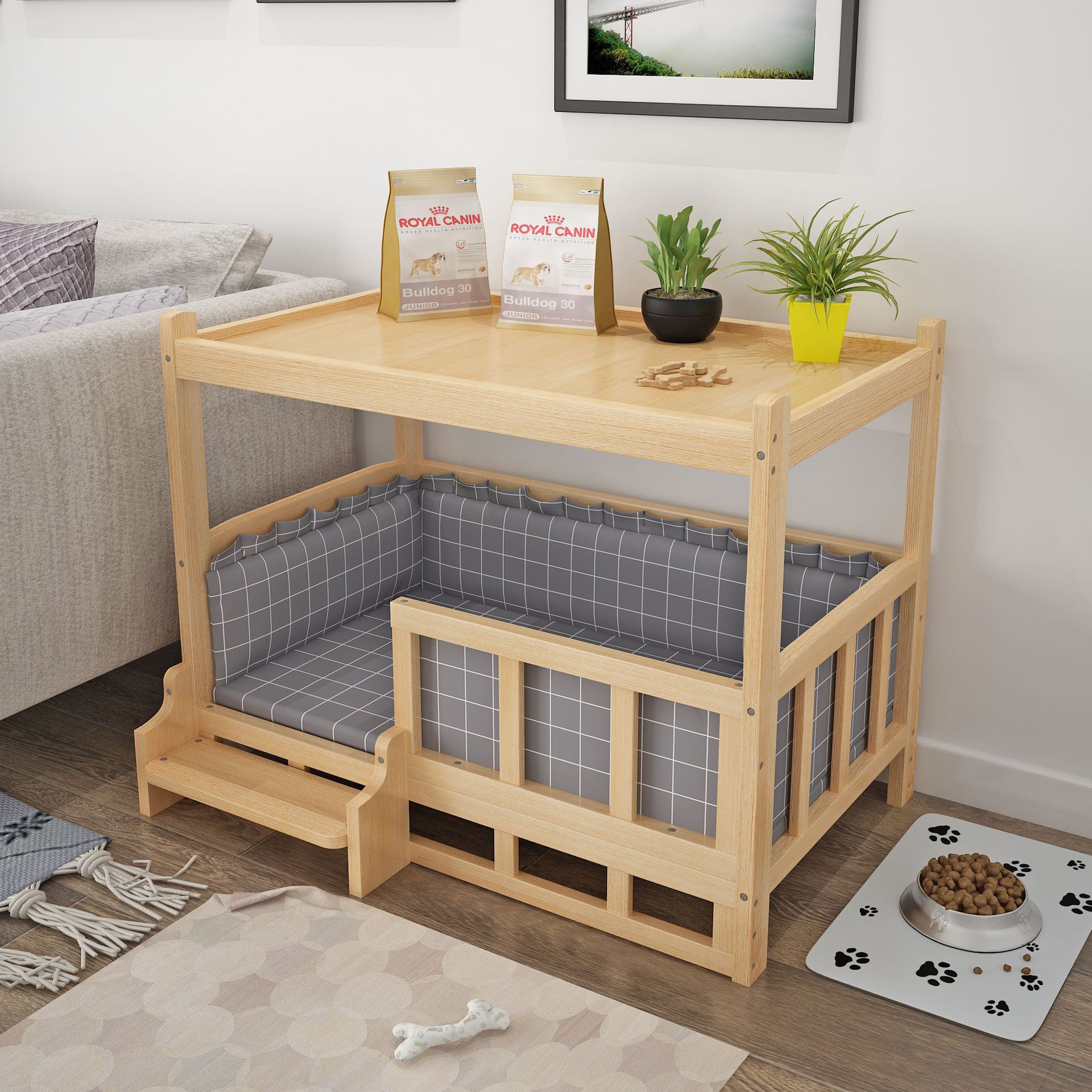 개 사육장 개 침대 단단한 나무 테디 골든 리트리버 탈착식 및 빨 수있는 가을과 겨울 애완 동물 침대 크고 중간 크기의 단단한 나무 애완 동물 용품 고양이 침대