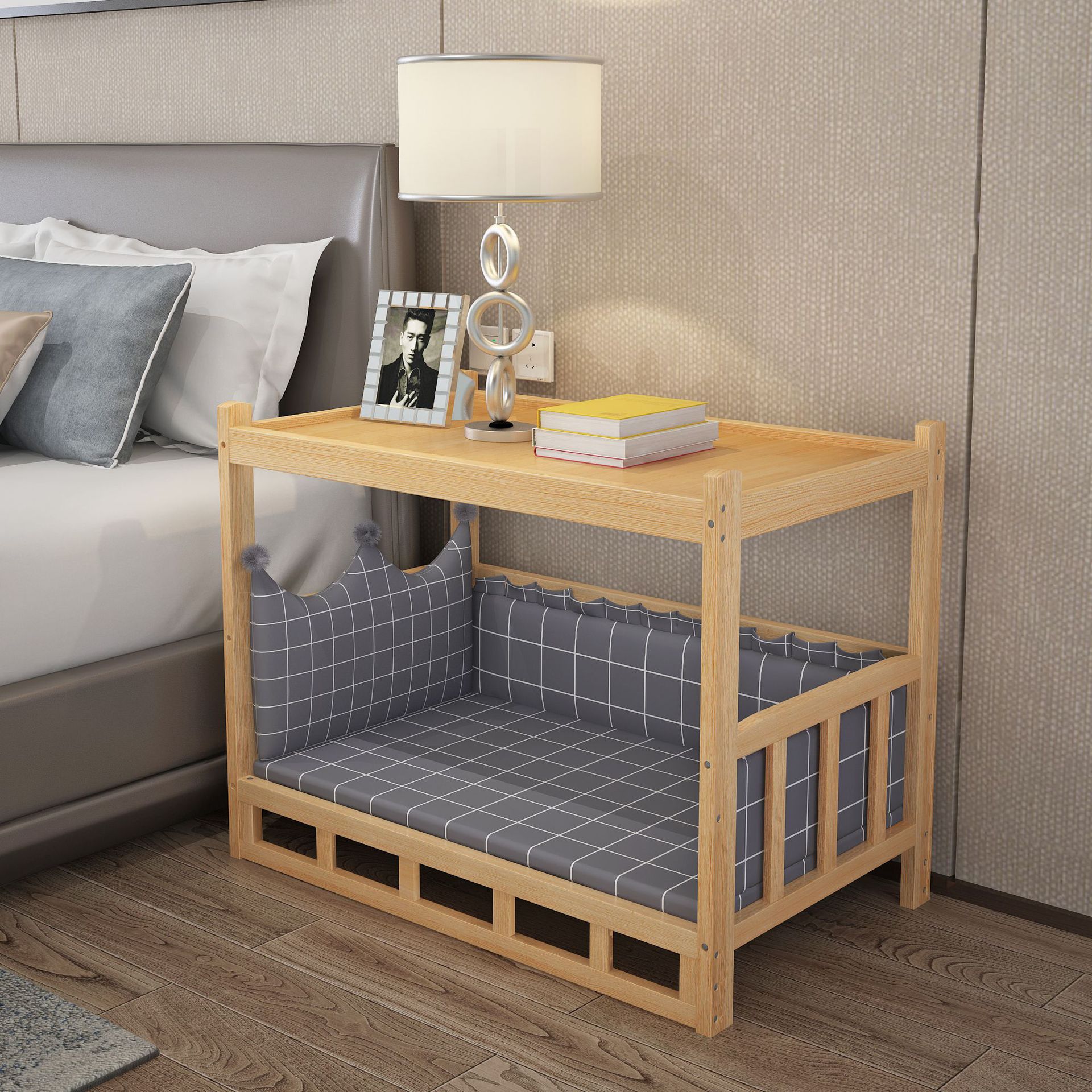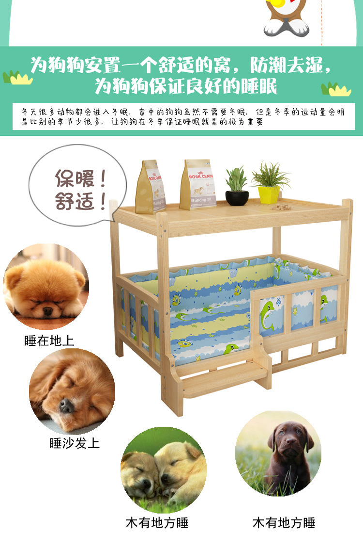 개 사육장 개 침대 단단한 나무 테디 골든 리트리버 탈착식 및 빨 수있는 가을과 겨울 애완 동물 침대 크고 중간 크기의 단단한 나무 애완 동물 용품 고양이 침대스토어 가기