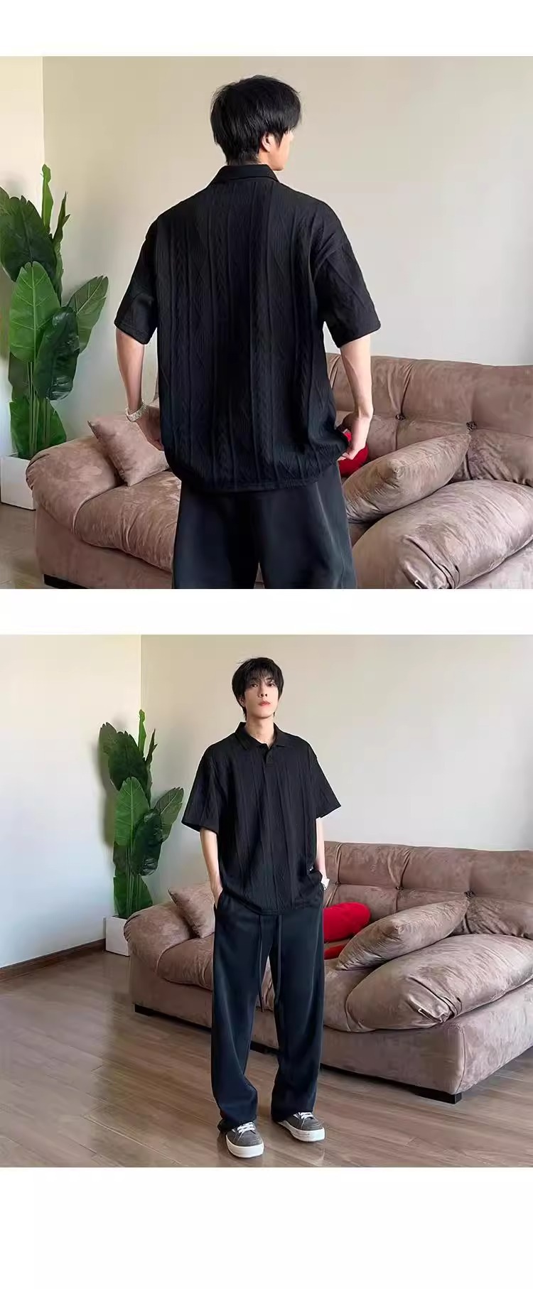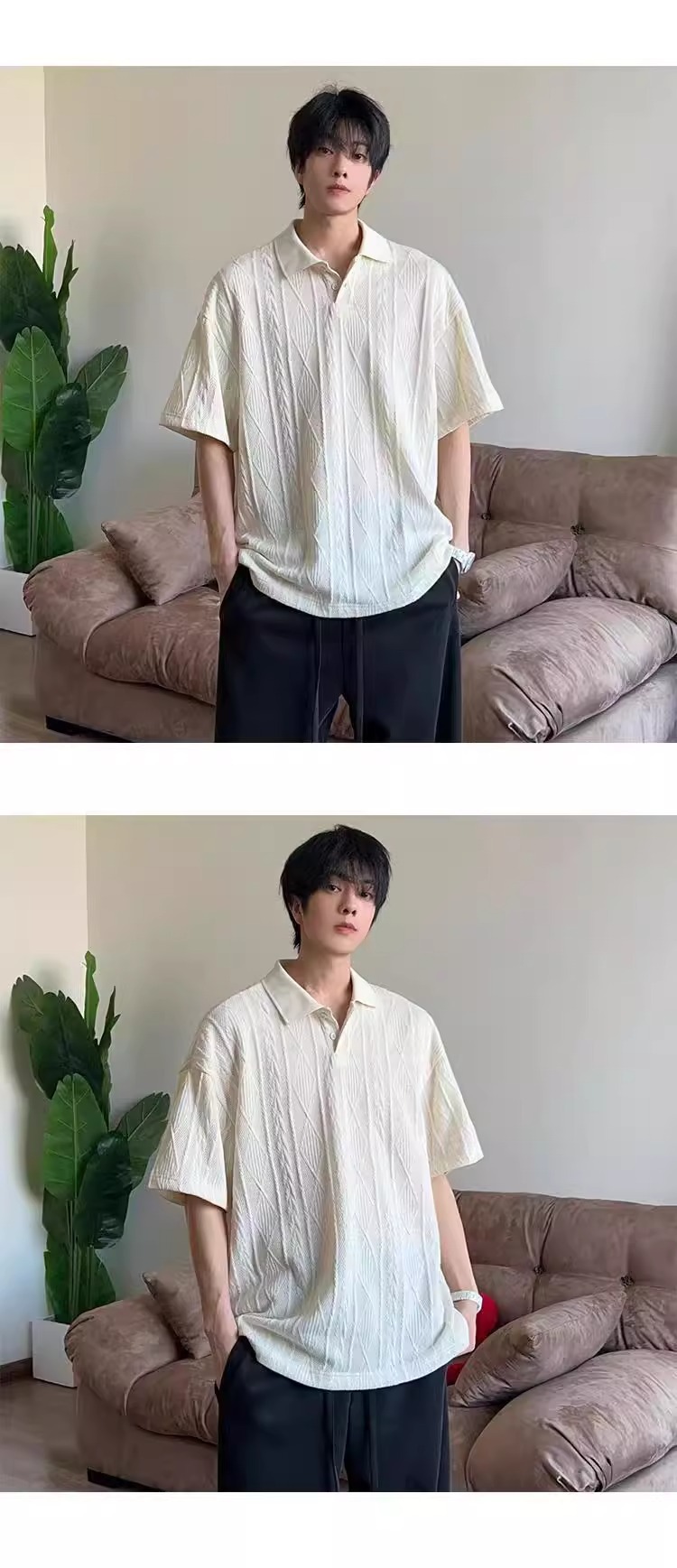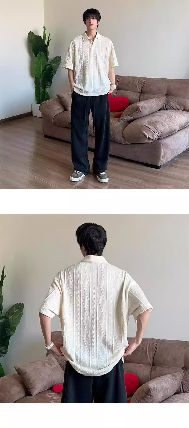밀 스파이크 패턴 자카드 니트 반팔 턴어라운드 남성 여름 올드 치안 펑슈아이 하이 엔드 숄더 티셔츠