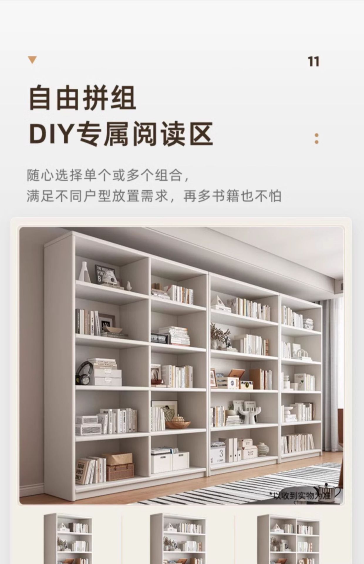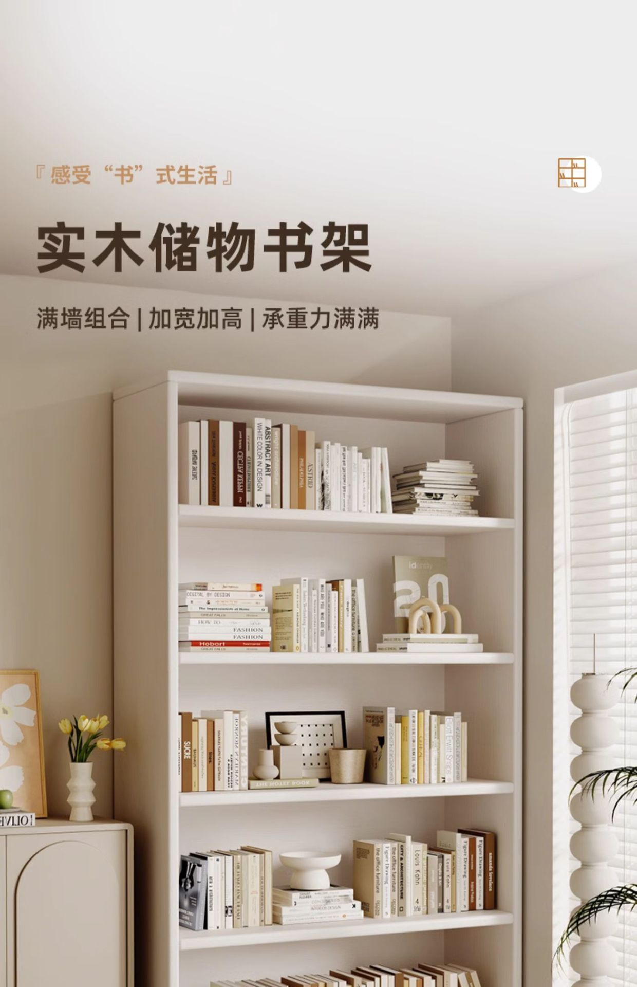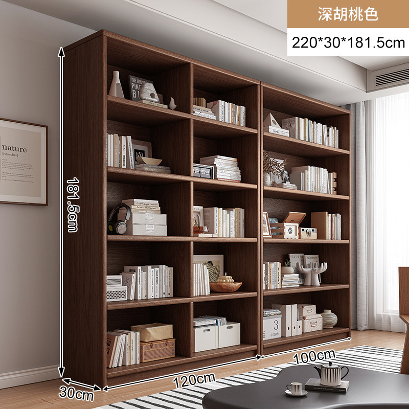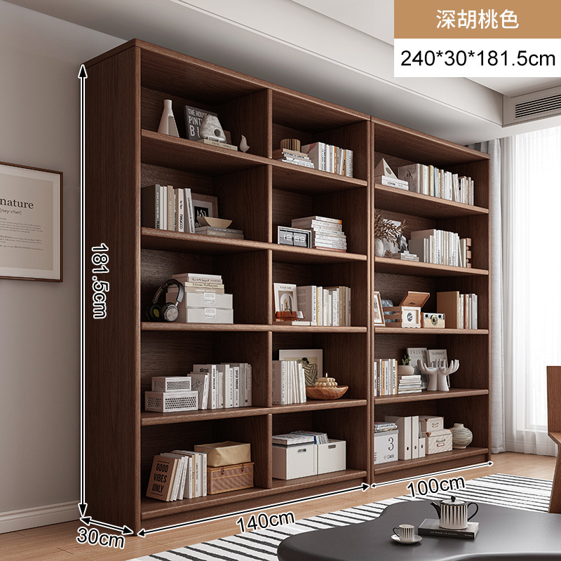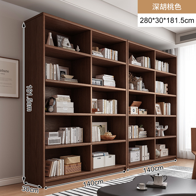全实木书架落地去客厅化一面墙书柜整墙收纳柜家用展示柜一体靠墙